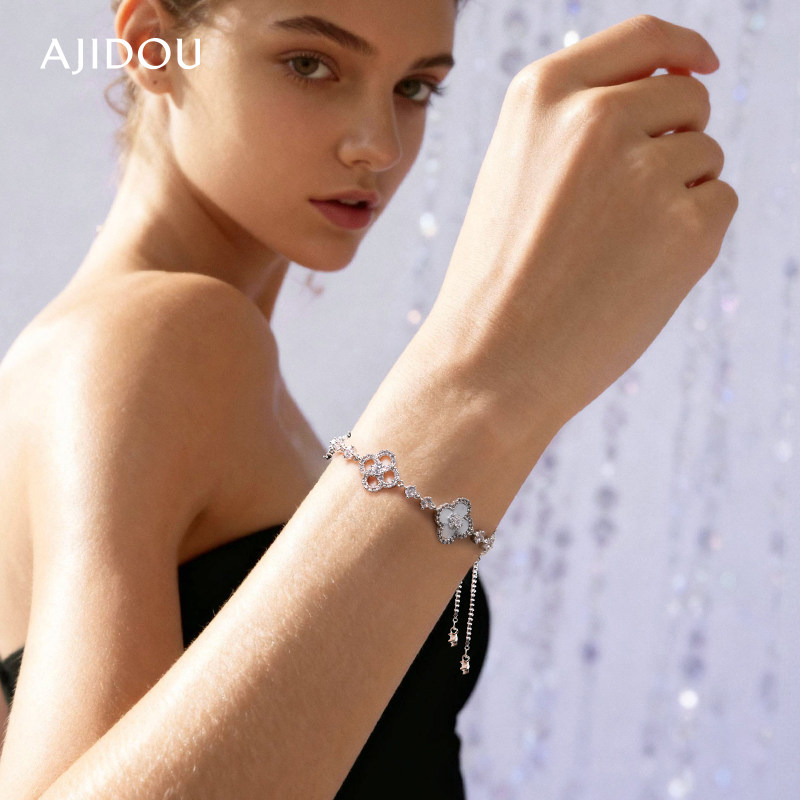 天猫AJIDOU阿吉豆设计师幸运四叶草手链女款轻奢小众秋冬送女友手饰品