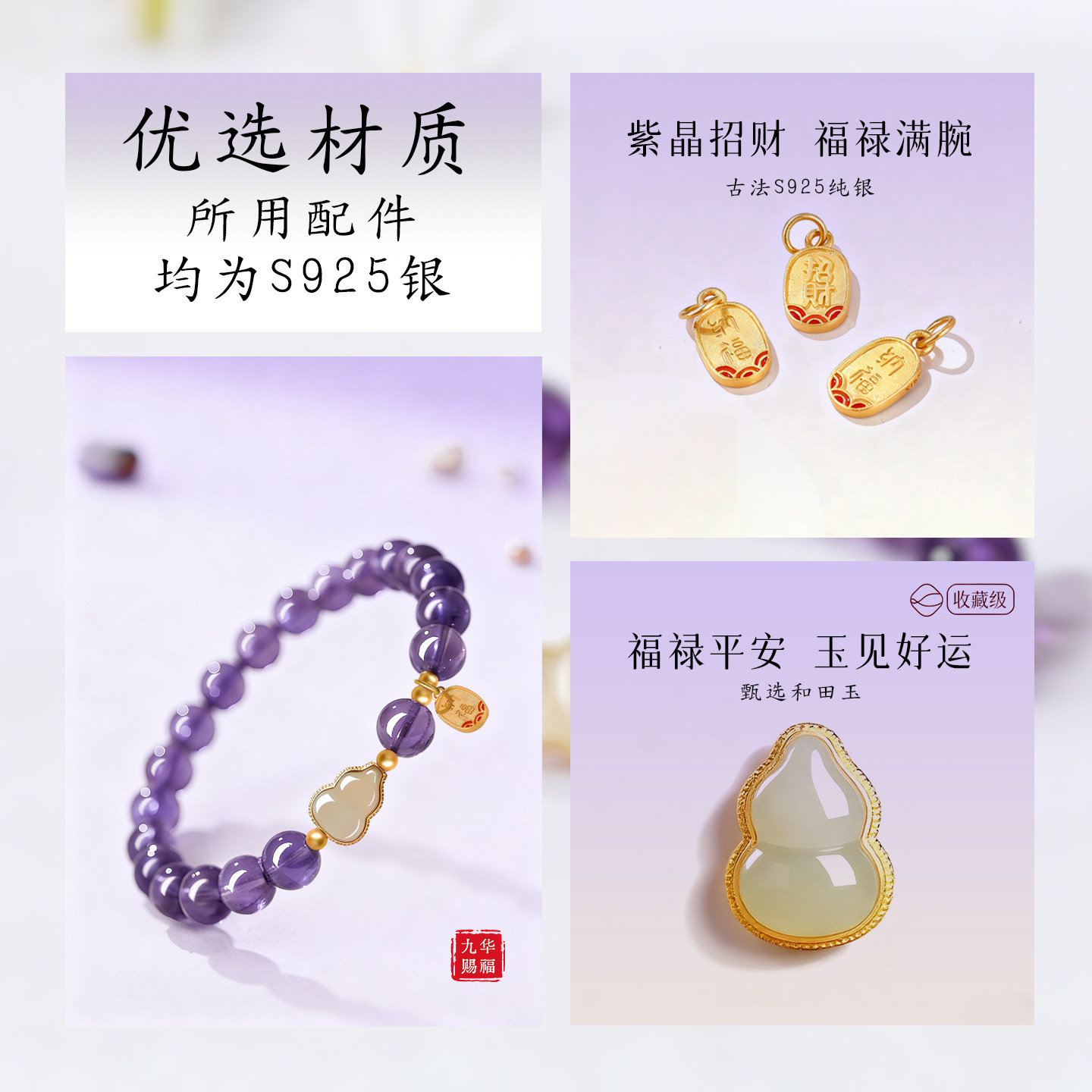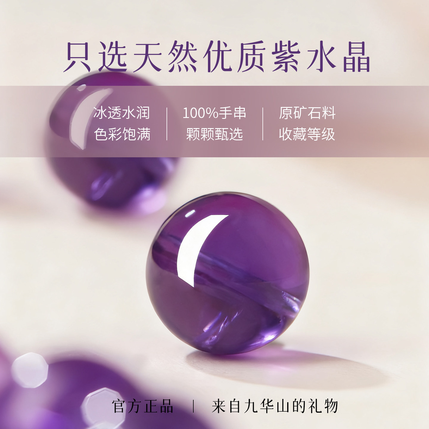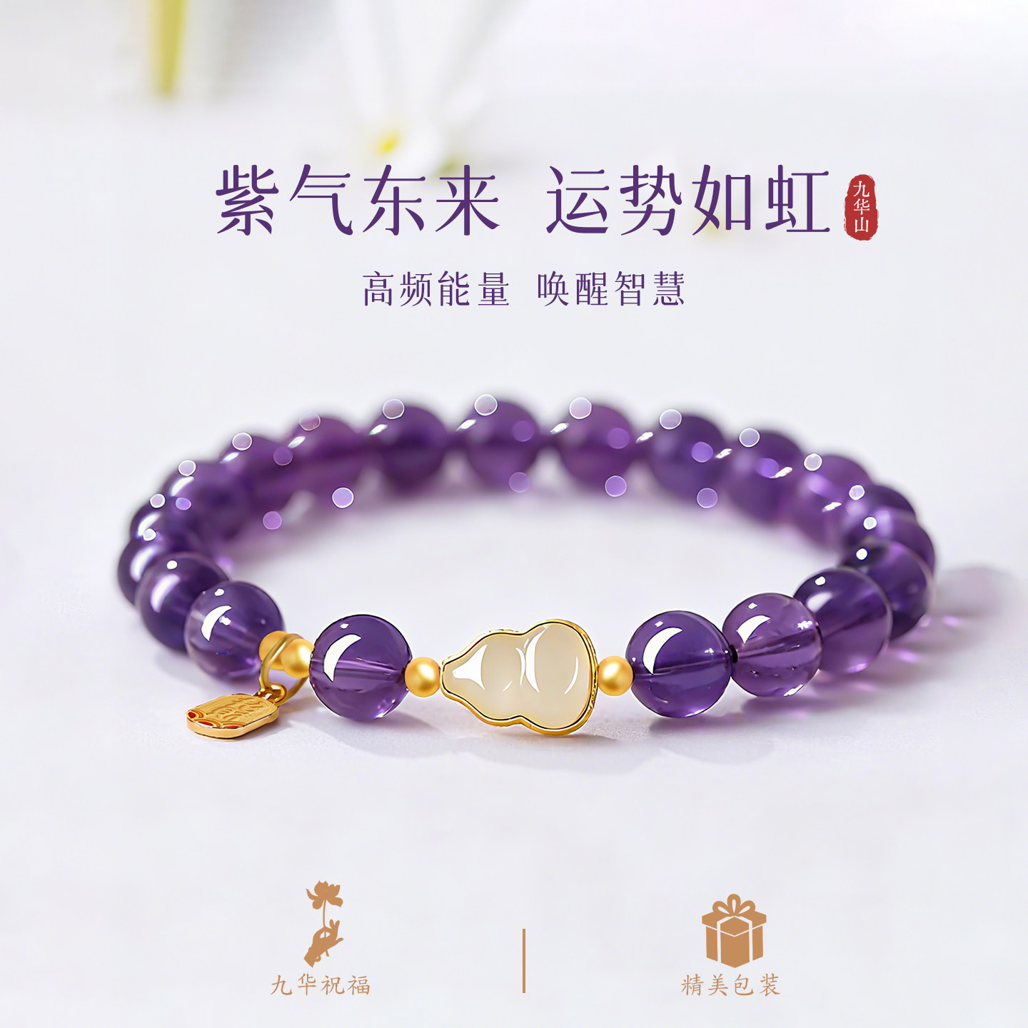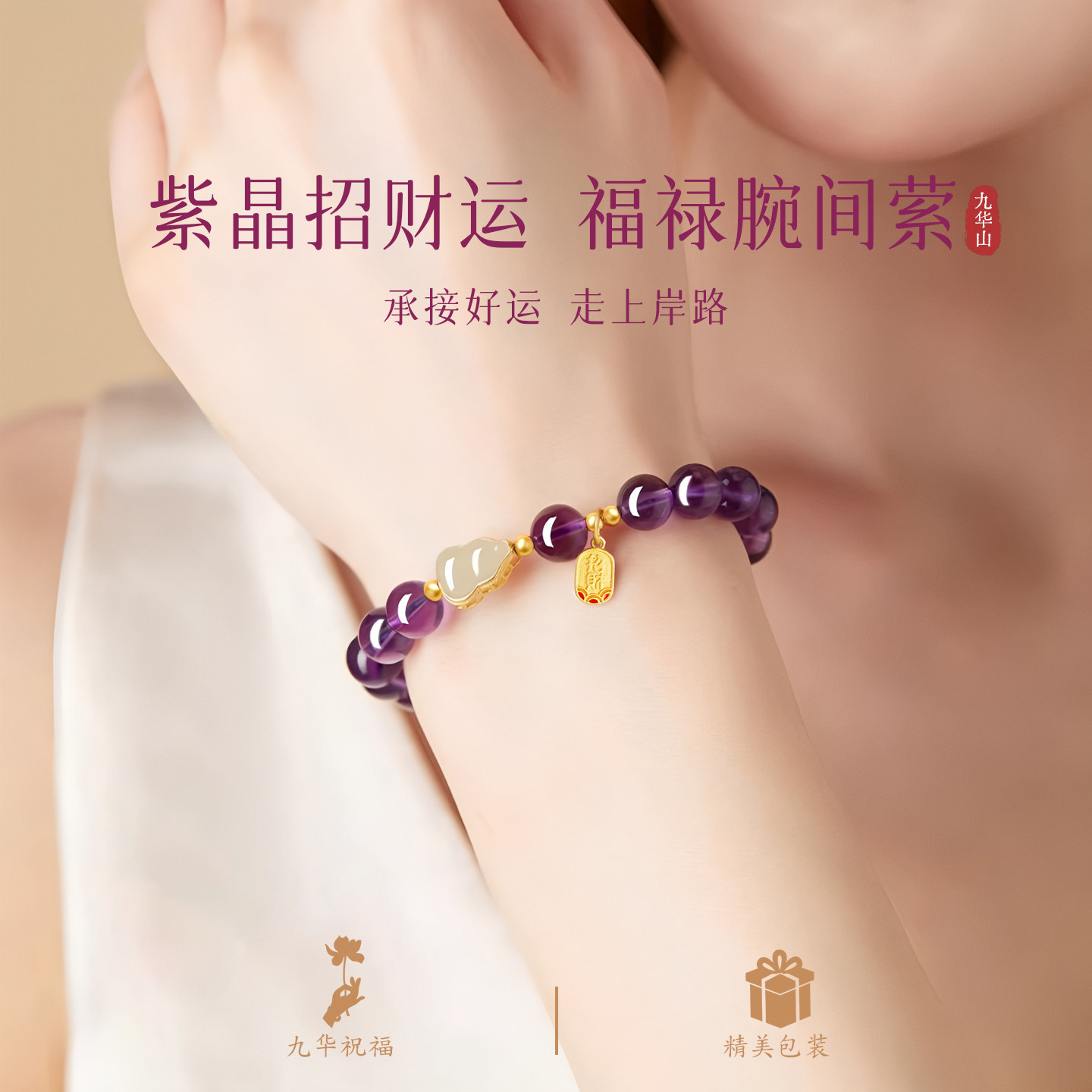 天猫九华山天然乌拉圭紫水晶手串九紫离火女手链转运珠高级感手饰礼物