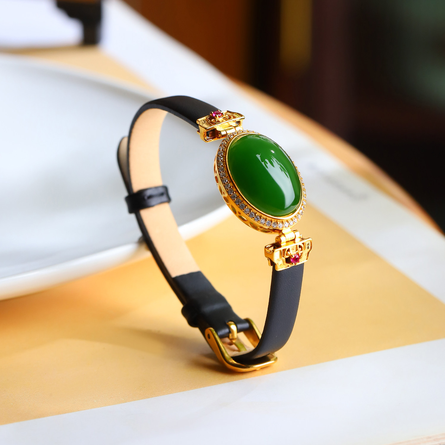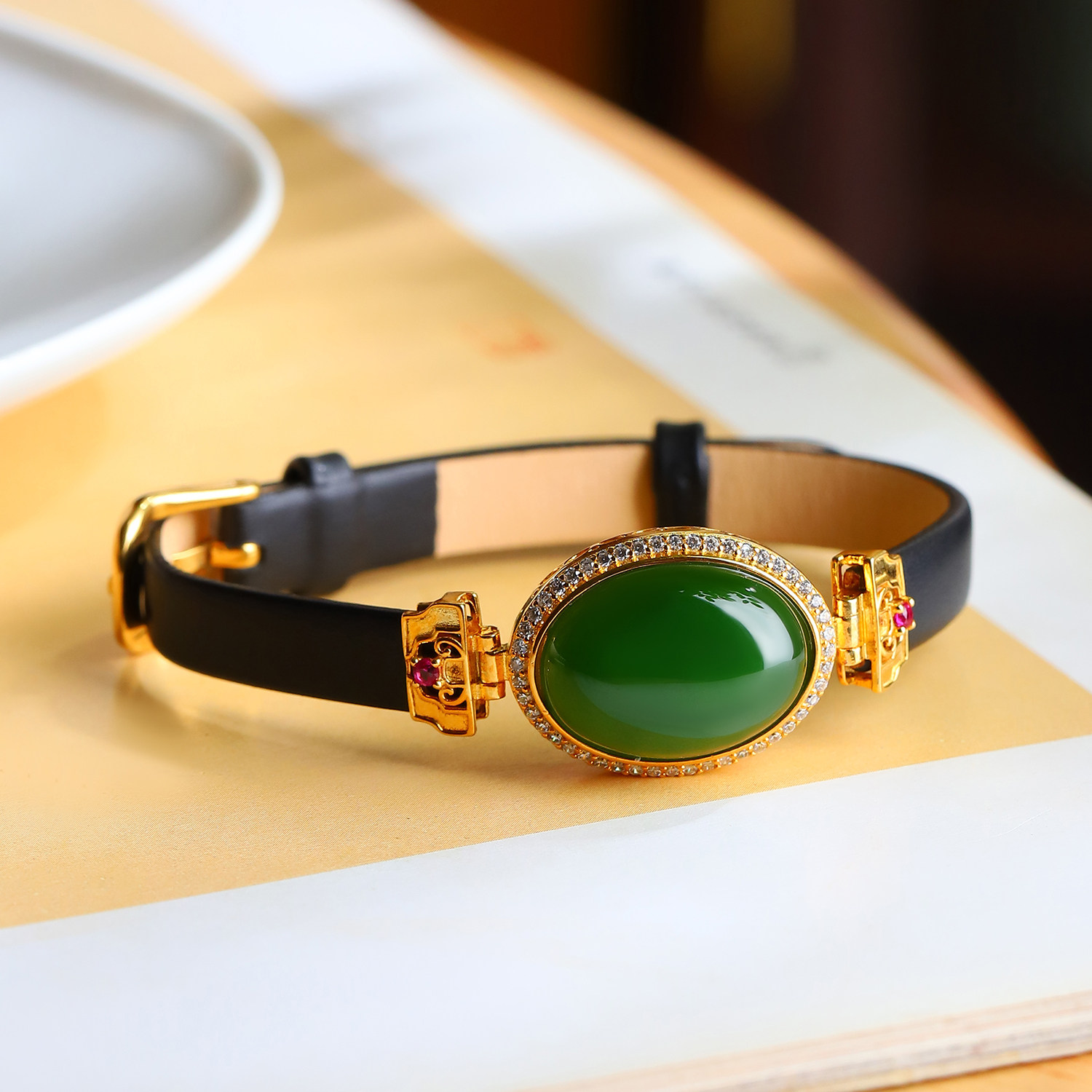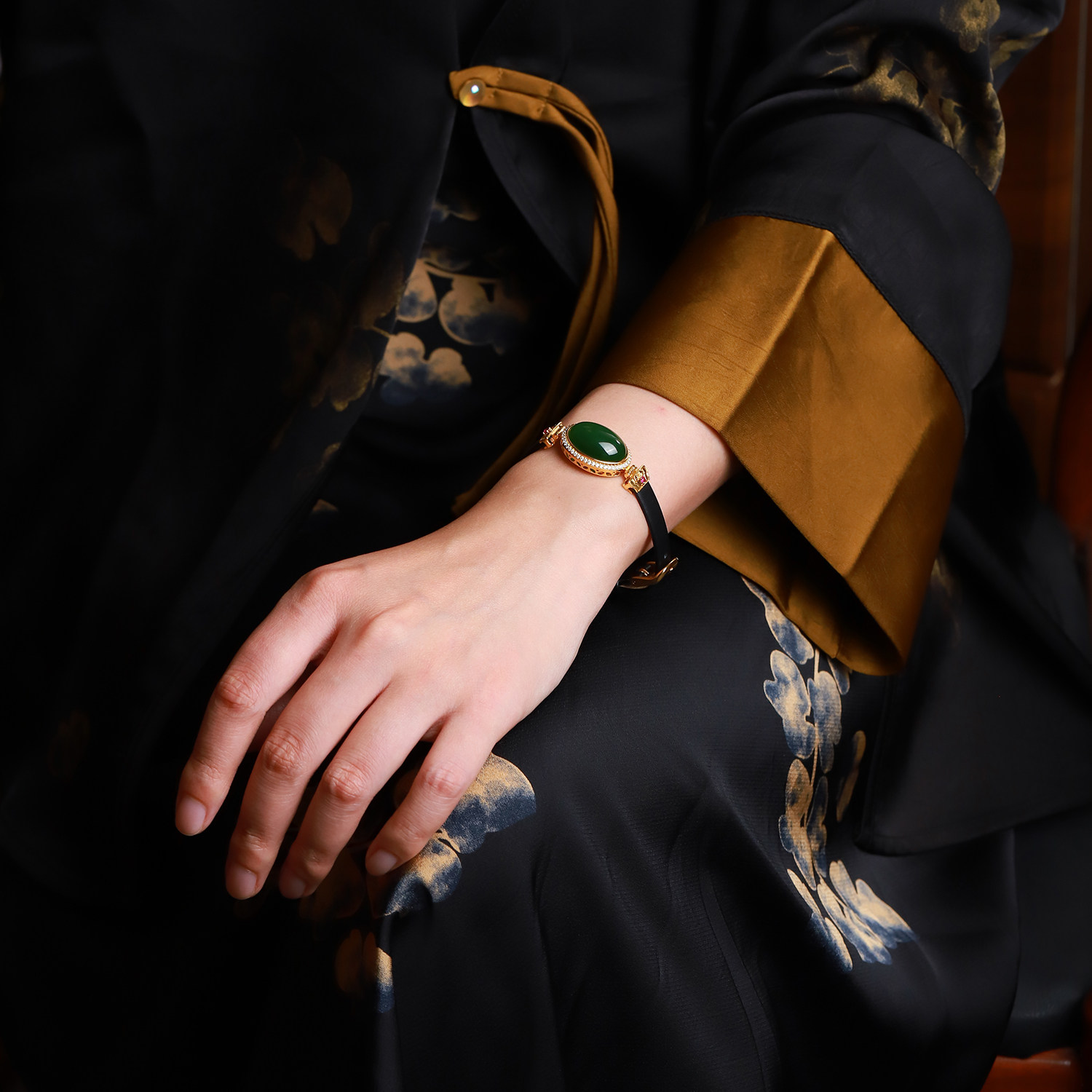 淘宝(古晨珠宝)俄罗斯和田玉碧玉特色手表款手链手饰人生如意10g