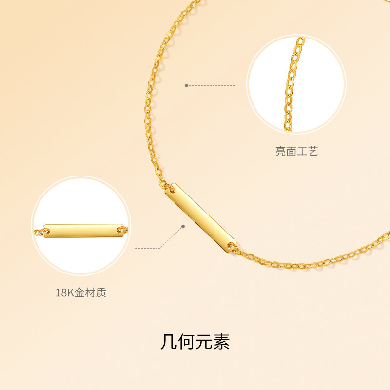 天猫周六福18K金手链女多彩AU750几何方形片手饰圣诞礼物送女友