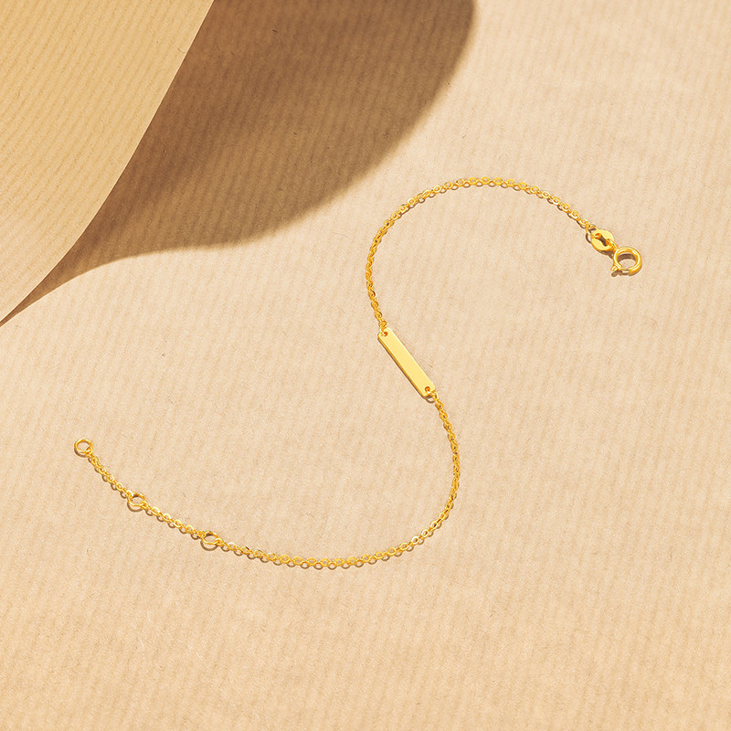 周六福18K金手链,精选优质AU750材质,色泽温润持久,佩戴舒适亲肤。手链采用时尚几何方形片设计,简约中透露现代美感,多彩工艺点缀其间,闪耀灵动光芒,彰显女性优雅气质。链身轻盈柔韧,贴合手腕曲线,日常搭配或重要场合皆宜。作为圣诞礼物,寓意美好与祝福,是送给女友的贴心之选。周六福匠心工艺,品质保障,让爱意随光芒流转,定格每一个浪漫瞬间。无论是节日惊喜还是纪念日表达,这款手链都能传递真挚情感,成为她腕间最动人的风景。
