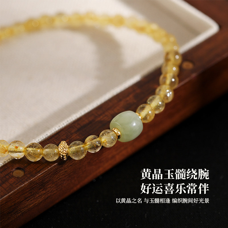 天猫黄水晶串珠手链女款2025新款轻奢小众精致高级感珠串叠戴手串手饰