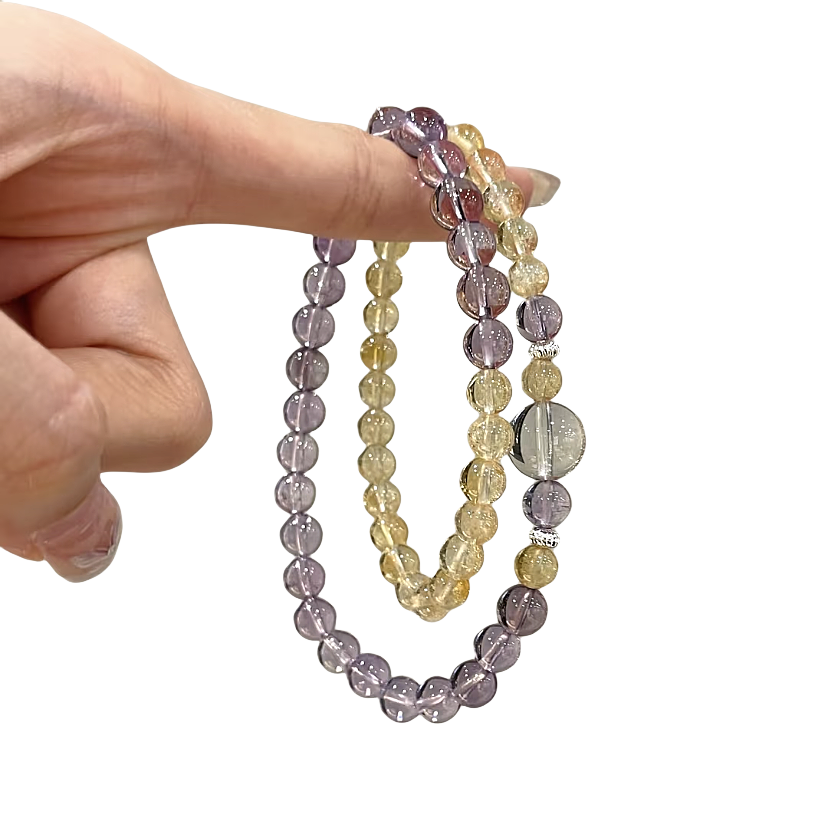 淘宝天然巴西紫水晶手链女款九紫离火招财转运手饰黄水晶手串双圈礼物