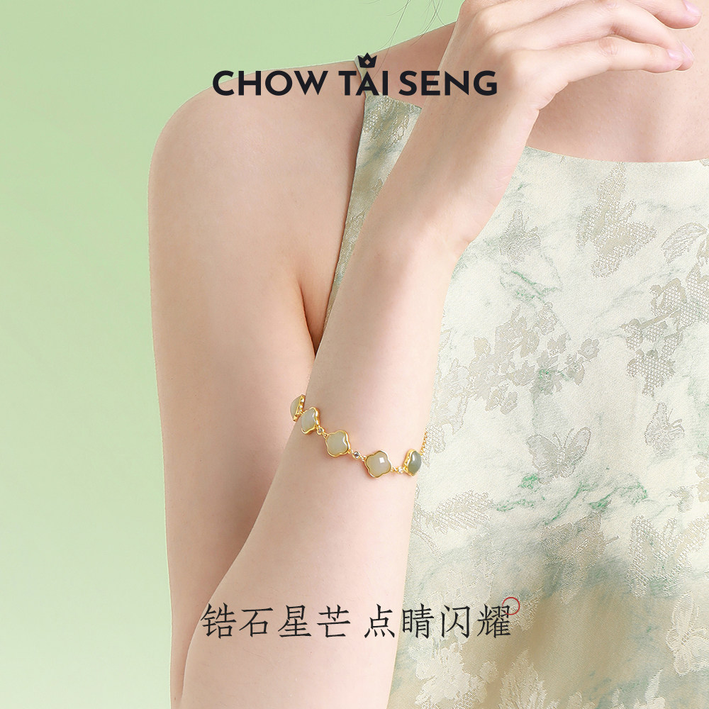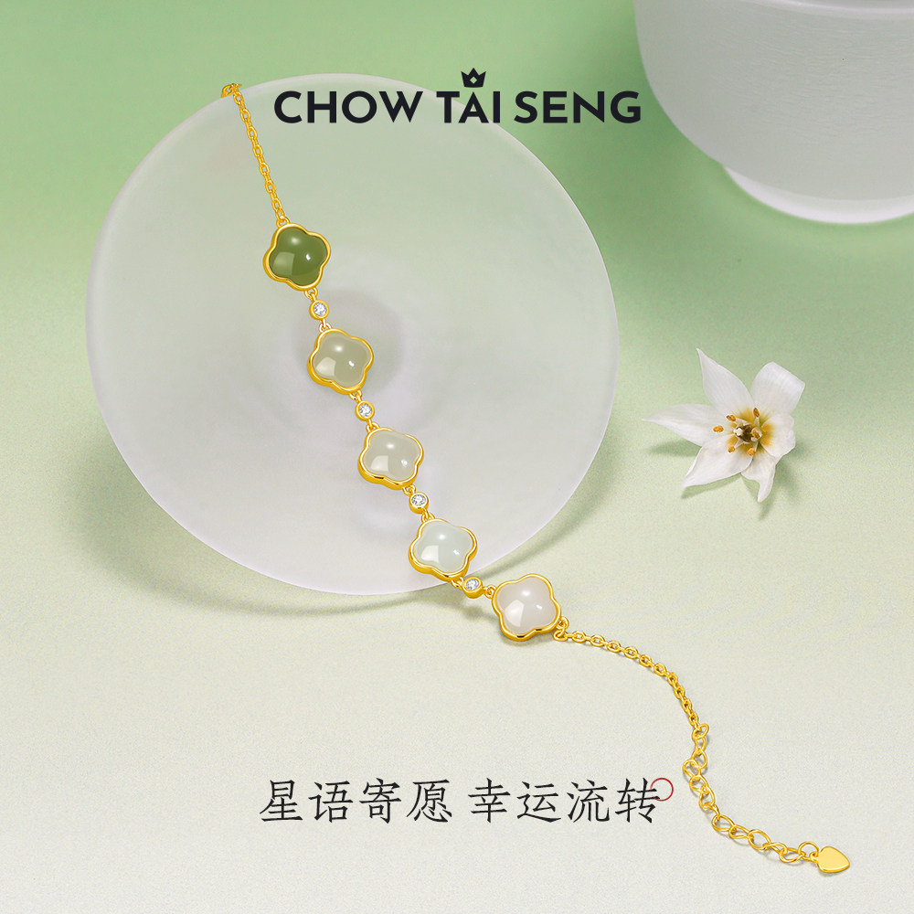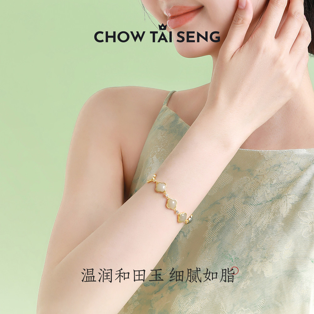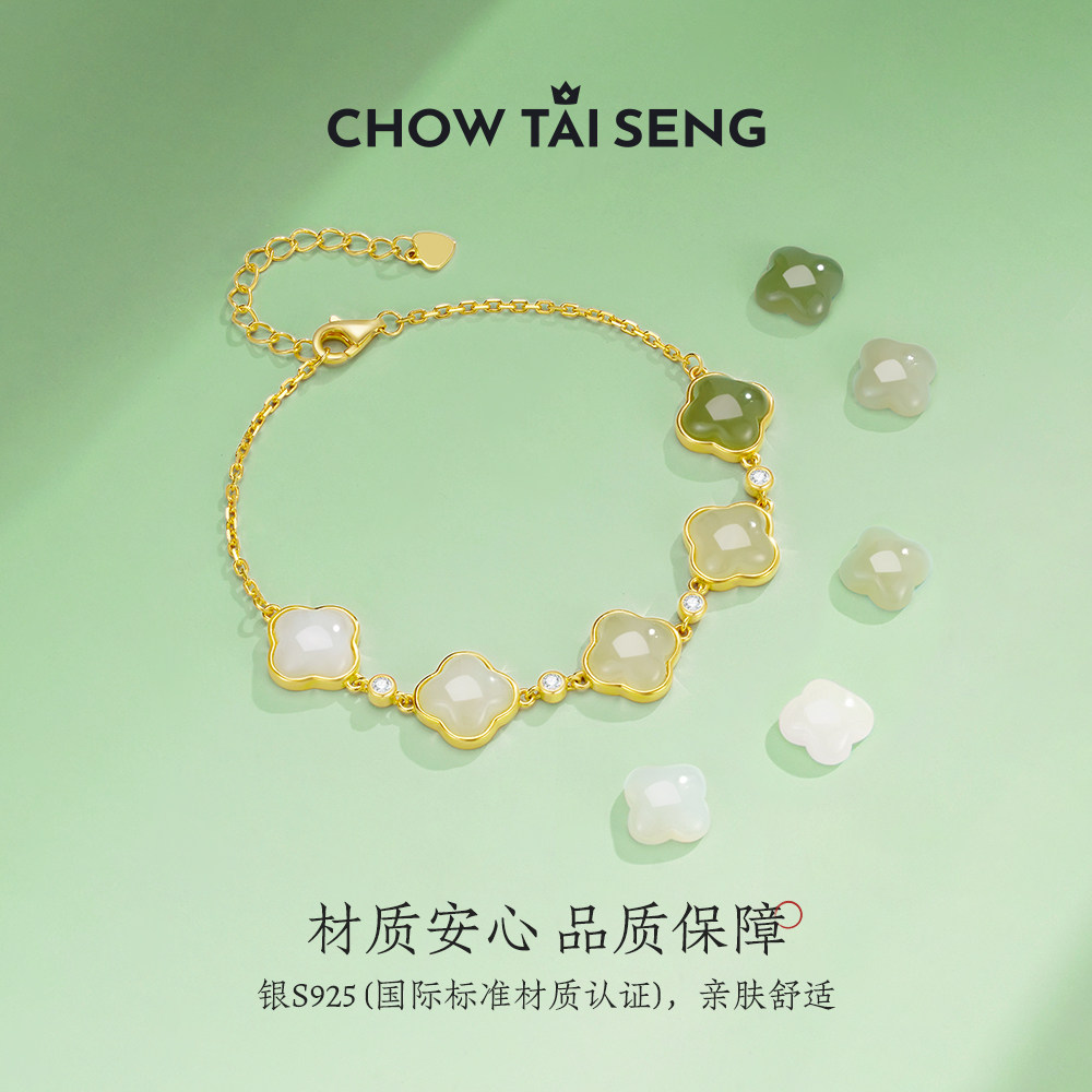 天猫周大生四叶草和田玉手链银S925国风高级手饰闺蜜生日礼物送女友