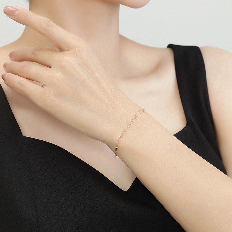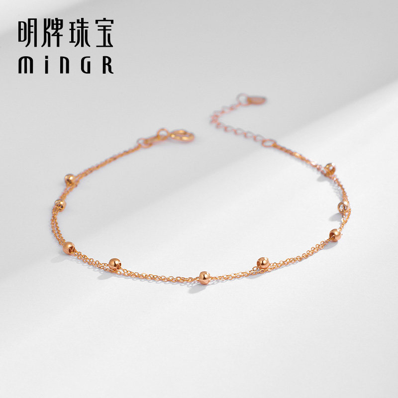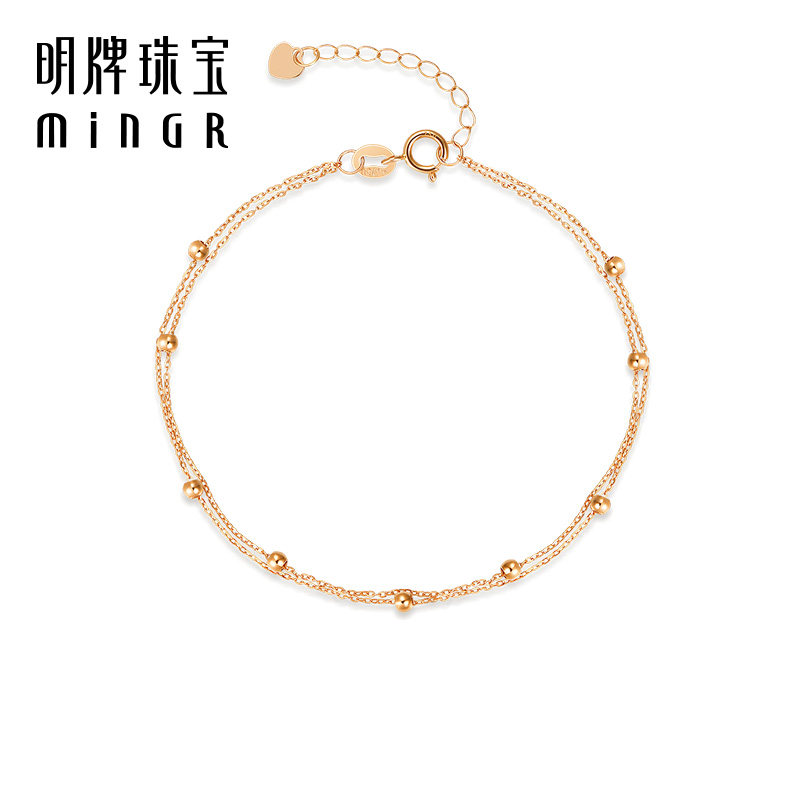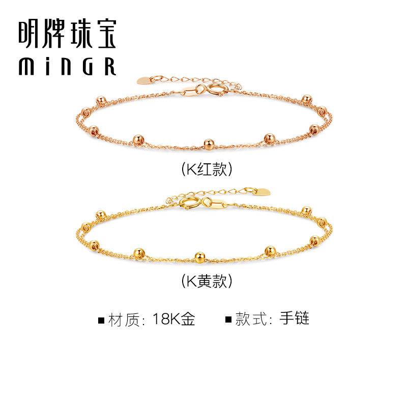 天猫明牌珠宝18K金点点星辰手链 K黄K红素链彩金双层女款手饰CSK0099