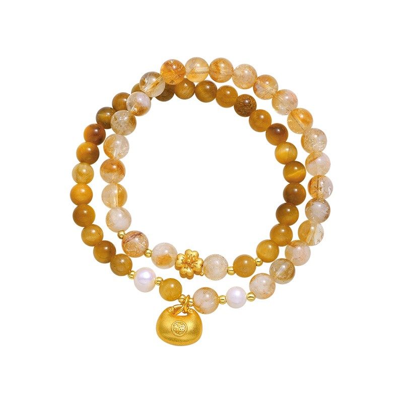 天猫白鹿同款双层叠戴黄水晶串珠手链女黄塔晶手串小福袋吊坠手饰冬天