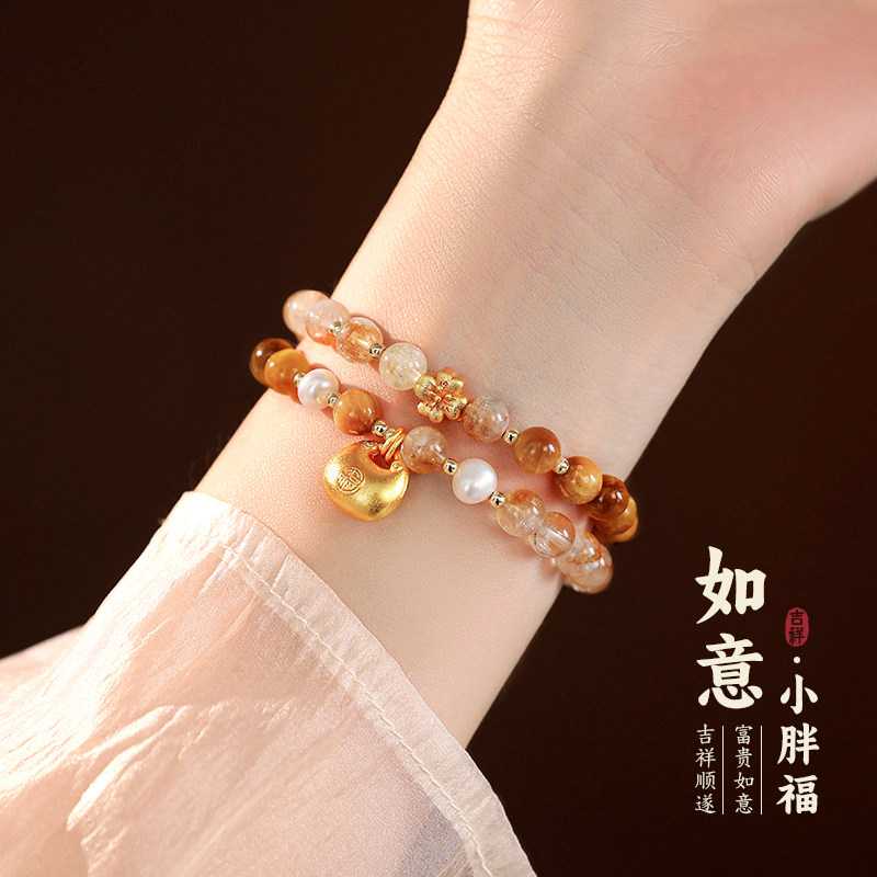 AJIDOU阿吉豆手链女时尚国风葫芦黄水晶手串新中式转运招财手饰品