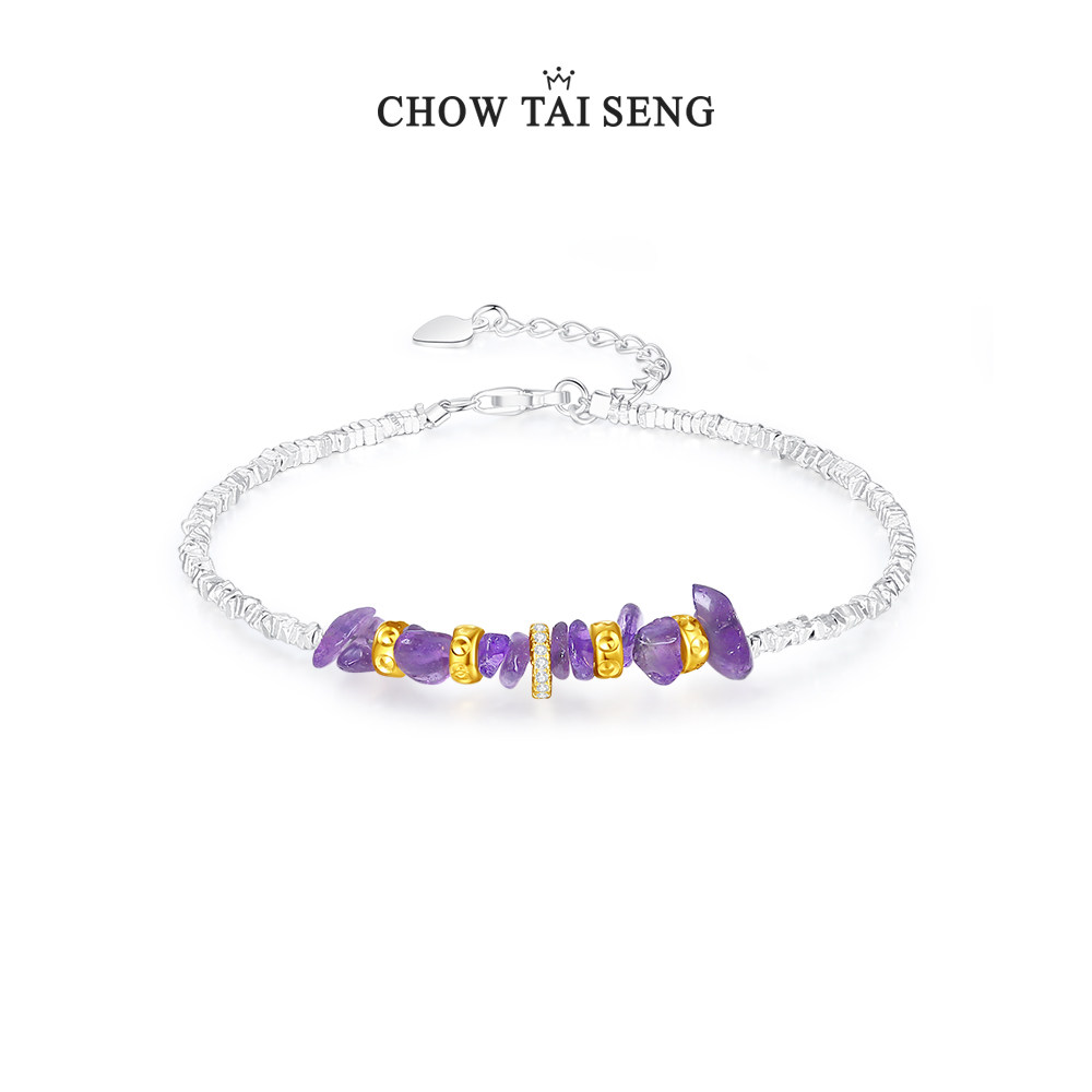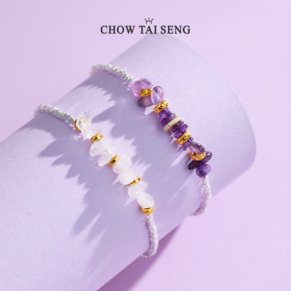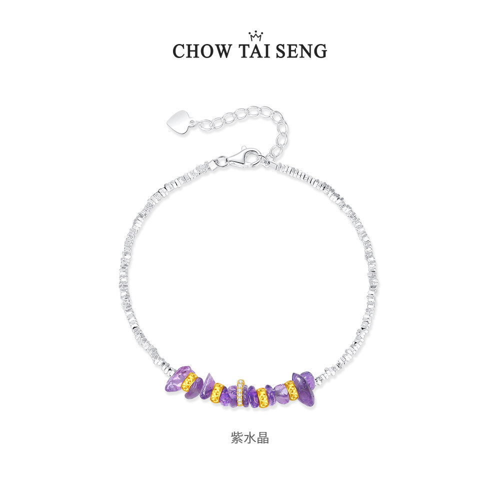天猫周大生碎银子紫水晶手链纯银S925国风高级感白水晶手饰生日礼物女