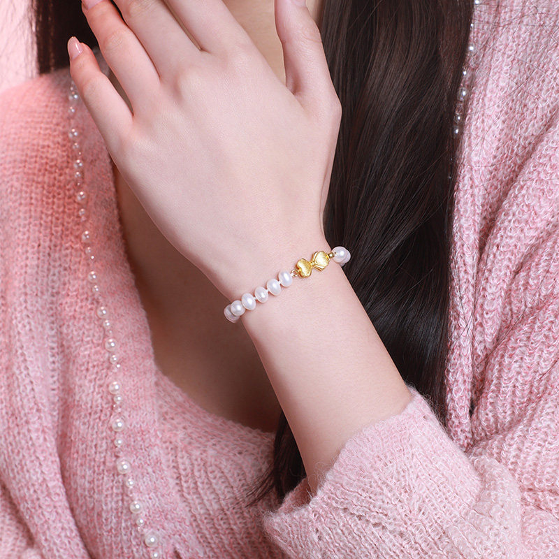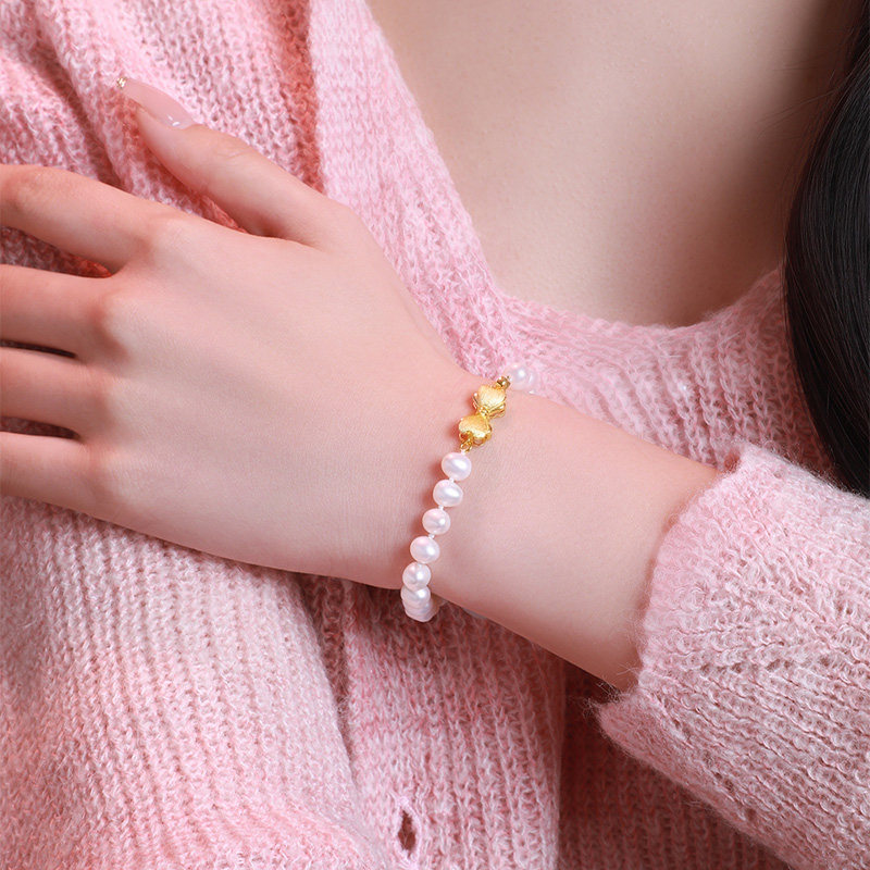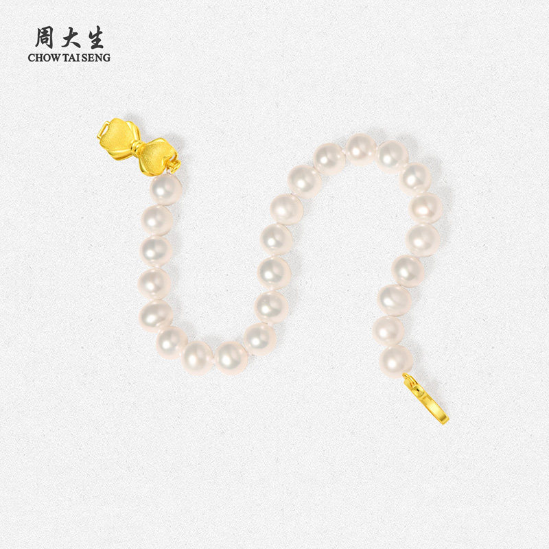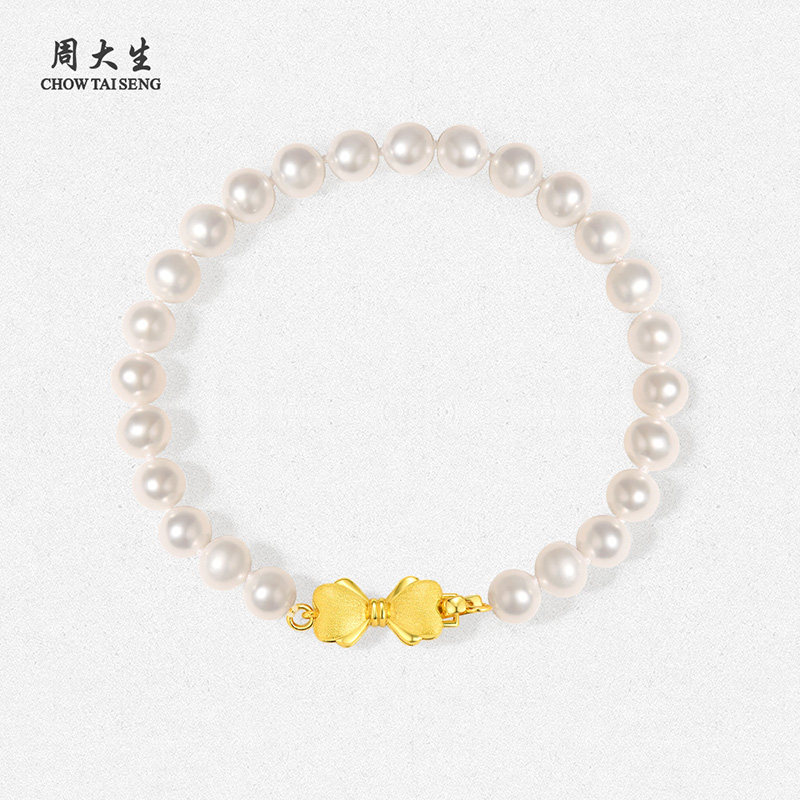 天猫周大生淡水珍珠手链S925银甜美蝴蝶结手串手饰生日礼物送女友