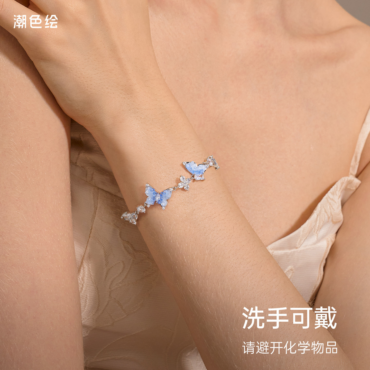 天猫潮色绘x冰晶蓝蝴蝶手链女款小众轻奢巨好看手饰品送闺蜜生日礼物