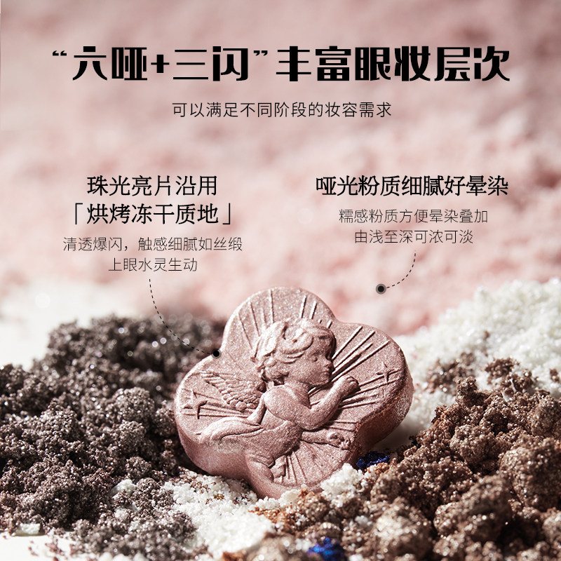 【满300减45】花知晓小天使九色眼影盘,官方正品保障,温柔与梦幻兼具。精选9款高显色度配色,涵盖哑光、珠光和细腻闪片,轻松打造日常通勤至派对晚宴的多样眼妆。粉质细腻顺滑,延展性强,不易飞粉,持久服帖不晕染。灵感源自天使羽翼,包装精致唯美,磁扣开合设计,便携又显质感。无论是新手还是彩妆达人,都能轻松驾驭。现在下单享满300减45优惠,性价比超高,是打造精致眼妆的理想选择。让每一次上妆,都如天使轻吻眼眸,绽放迷人光彩。