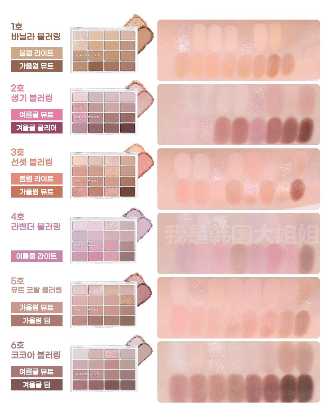 韩国Wakemake Soft Bluring 16色眼影盘是一款集珠光、哑光、粉色与大地色系于一体的实用彩妆盘。柔焦质地轻盈细腻,轻松打造自然晕染效果,适合日常通勤或精致妆容。16种色调涵盖从温柔粉棕到深邃大地色,满足不同眼型与场合需求。高显色度搭配顺滑延展性,轻松叠加不结块。特别添加提亮色,可精准点缀卧蚕与眼头,瞬间放大双眼、提升立体感。粉质柔和不飞粉,持久贴合眼皮,妆效自然通透。包装小巧便携,配色科学实用,是追求高性价比与多场景妆容的彩妆爱好者理想之选。