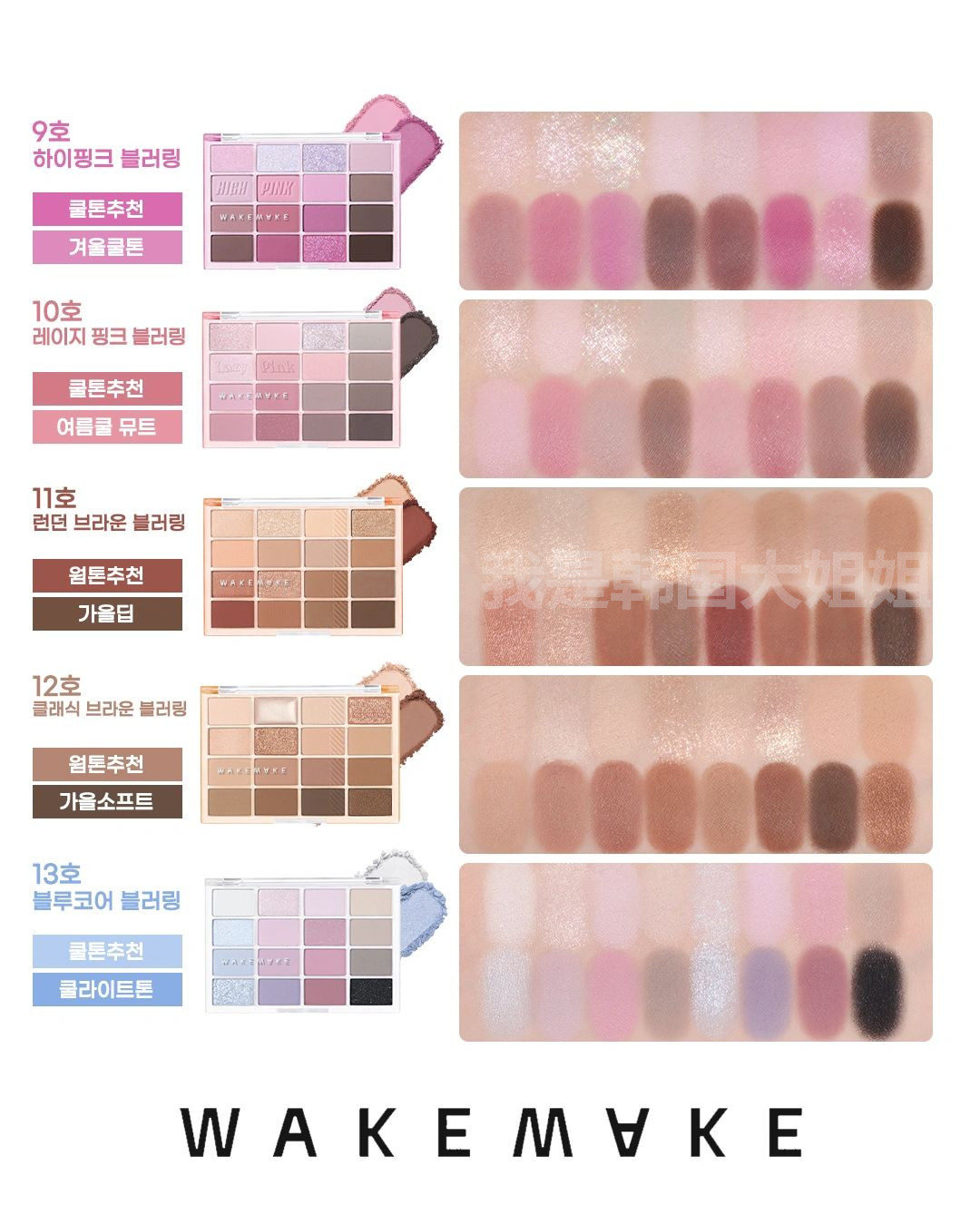 淘宝韩国wakemake soft bluring眼影盘16色珠光哑光粉色大地提亮卧蚕