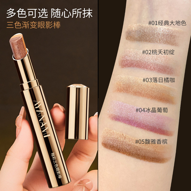 淘宝渐变懒人三色一体眼影棒哑光珠光高光初学者日常淡妆不飞粉眼影笔