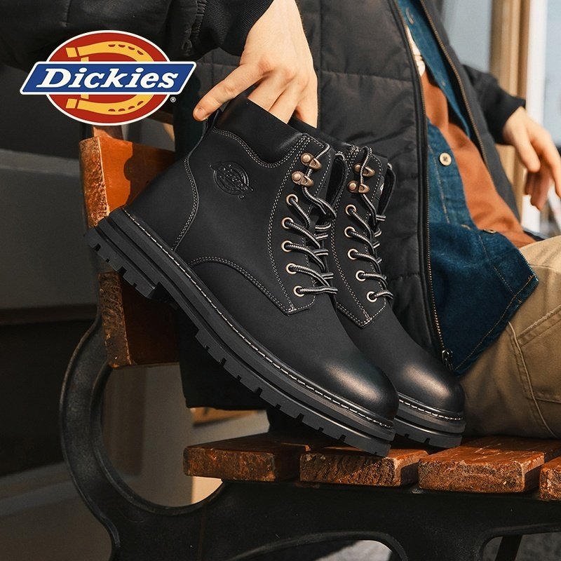 Dickies马丁靴男款高帮工装靴,专为冬季打造,兼顾保暖与 rugged 风格。采用优质耐磨牛皮材质,结实耐穿,抗撕裂性能强,适合多种户外环境。内里加绒设计,柔软舒适,有效锁温,即使在寒冷雪地也能保持双脚温暖。高帮结构提供良好脚踝支撑,防滑橡胶大底抓地力强,行走稳健安全。经典工装造型搭配金属鞋带扣,彰显硬汉气质,轻松驾驭工装、休闲等多种穿搭风格。无论是日常通勤还是户外出行,Dickies马丁靴都是男士冬季的理想选择,实用与型格兼具。