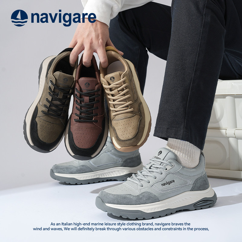 Navigare意大利小帆船男鞋2026春秋新款网面老爹鞋,融合意式经典设计与现代休闲风尚,专为追求舒适与品味的男士打造。采用高品质透气网面材质,轻盈透气,有效排汗,适合春秋季节日常穿搭。厚底设计不仅提升整体造型感,更提供良好的缓震支撑,行走舒适不累脚。复古老爹鞋型搭配精致车缝线与品牌标识,彰显低调奢华质感。无论是搭配牛仔裤、休闲裤还是运动装,都能轻松驾驭,展现都市型男的不凡格调。Navigare以匠心工艺诠释意式优雅,是时尚与功能兼具的理想之选。