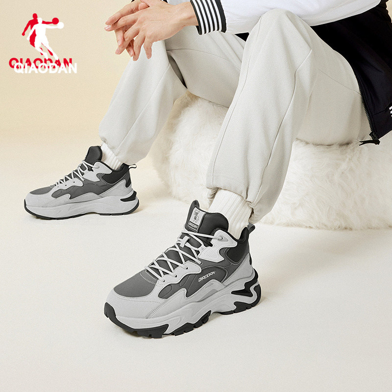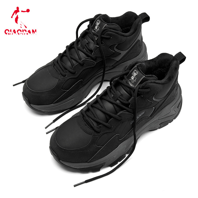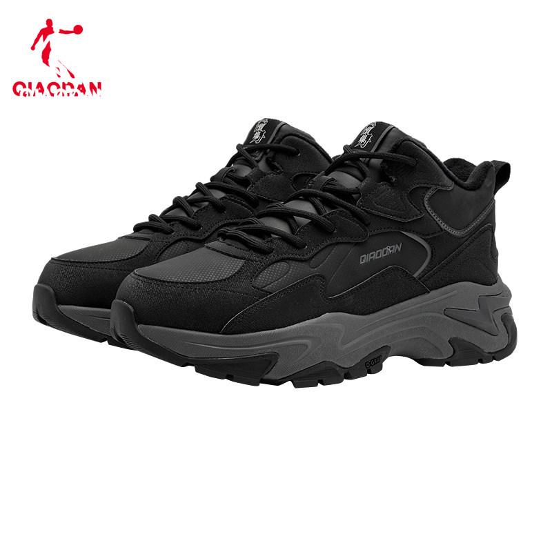 天猫星芒|乔丹高帮加绒保暖棉鞋男鞋2025冬季新款厚底休闲鞋黑色鞋子