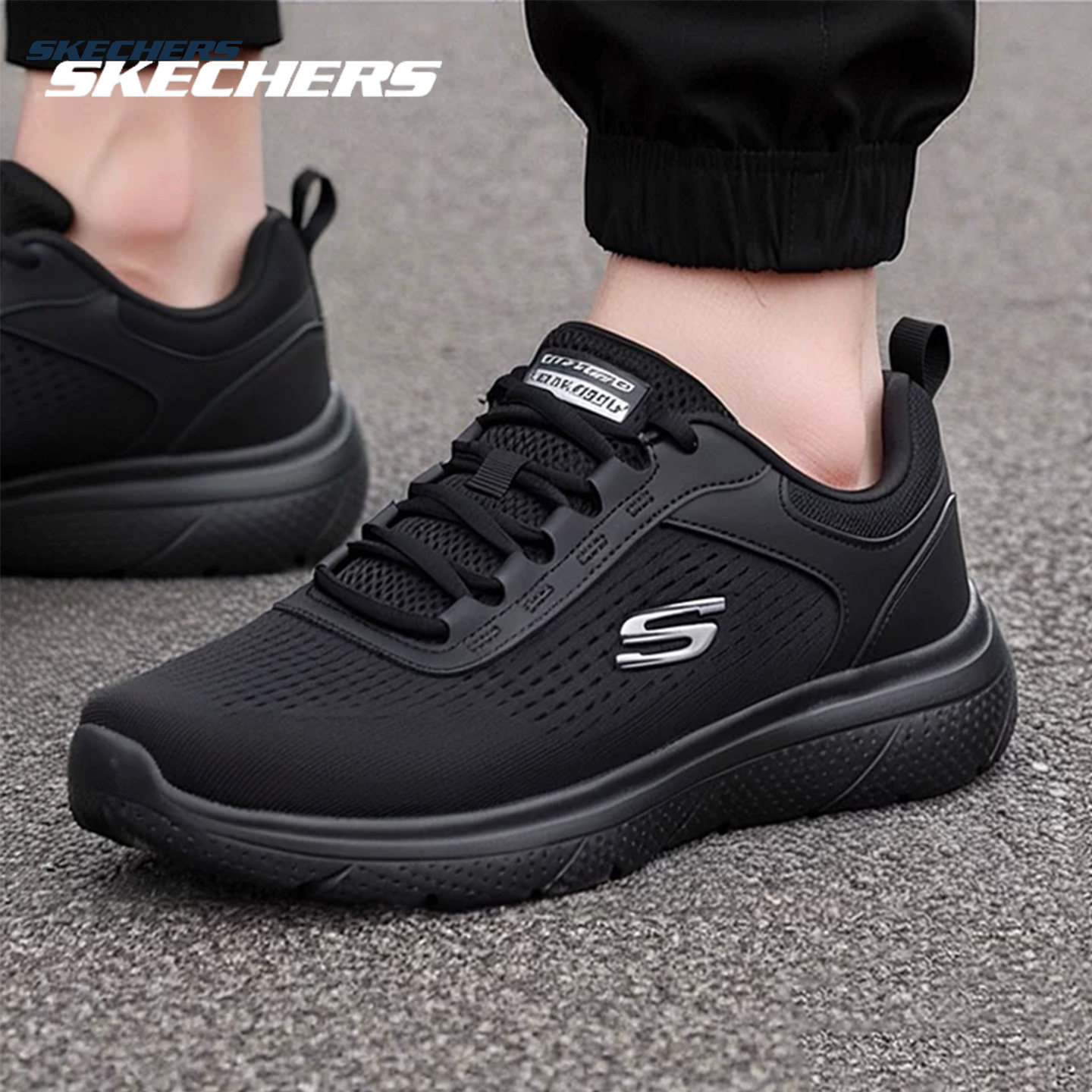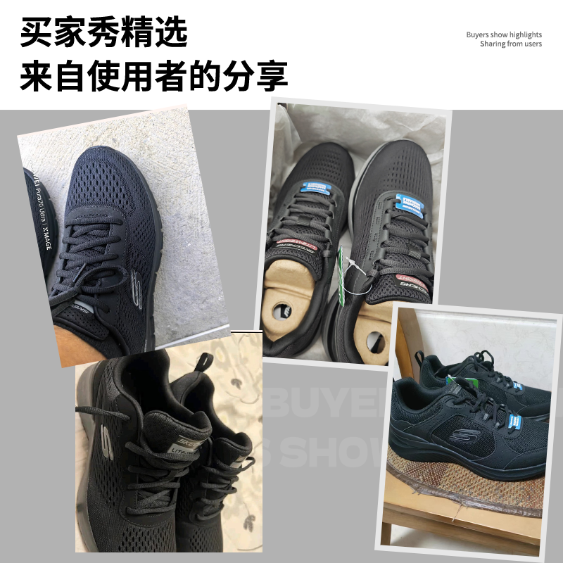 天猫斯凯奇男鞋秋冬新款官方网面跑步鞋黑武士官方正品纯黑鞋子运动鞋