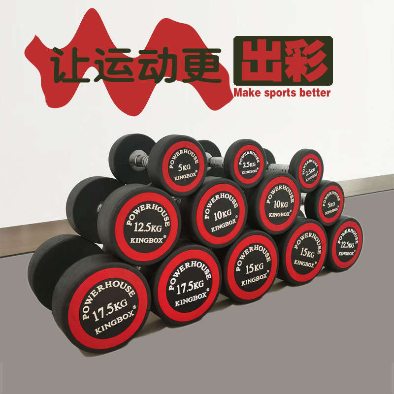 淘宝KINGBOX新款商用私教固定圆头包胶双层哑铃架套装 单只15公斤x2只