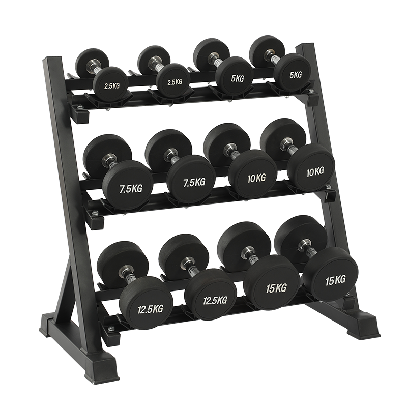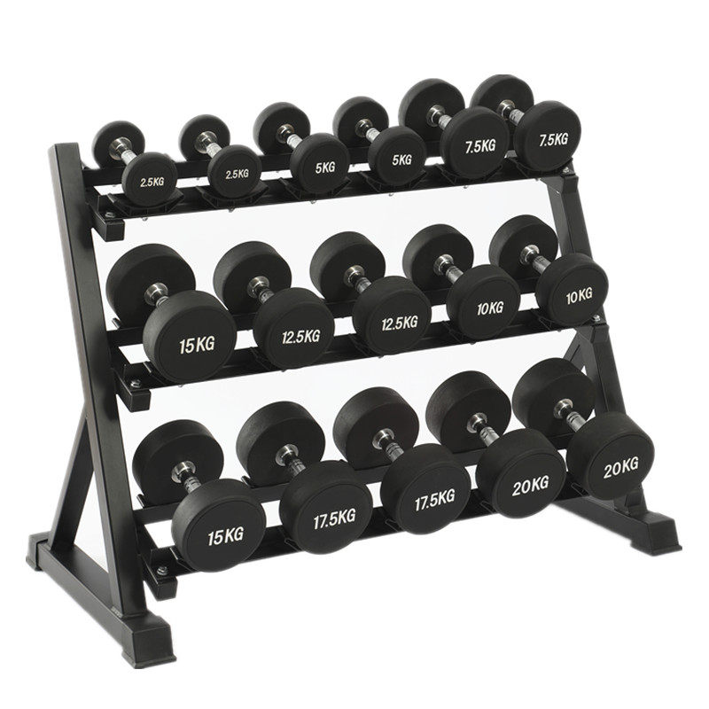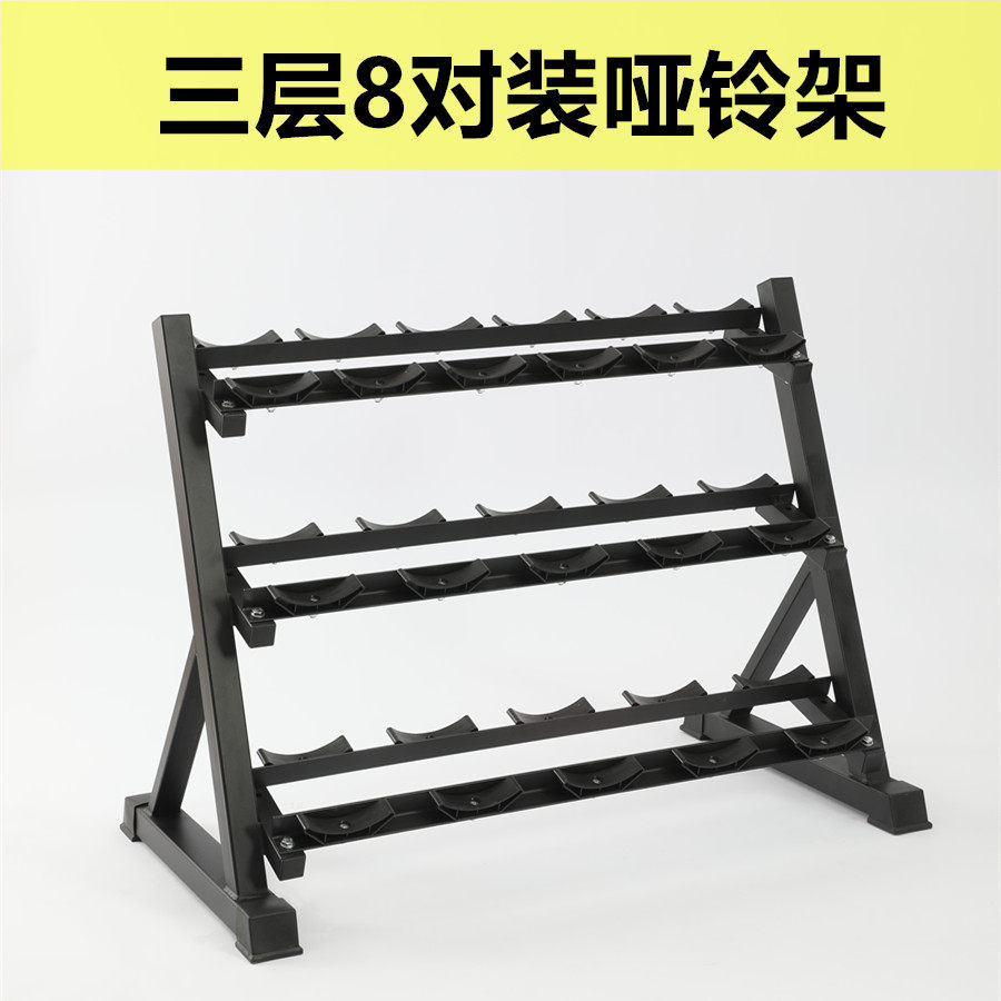 淘宝8对装哑铃架固定哑铃组合套装家用健身 健身房包胶哑铃三层哑铃架