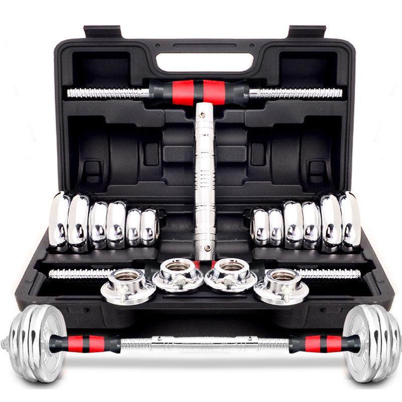 淘宝电镀哑铃可拆卸调节重哑铃杠铃两用套装练臂男士女士肌通用铁哑铃