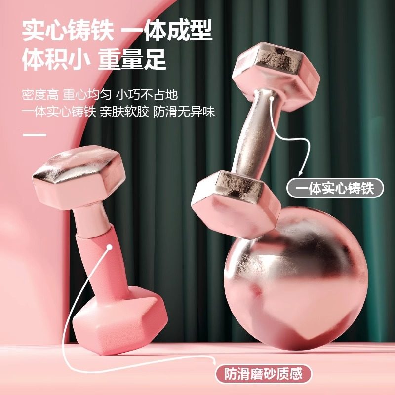 哑铃女士健身家用运动器材训练浸塑实心纯铸铁杠铃小哑玲2kg一对