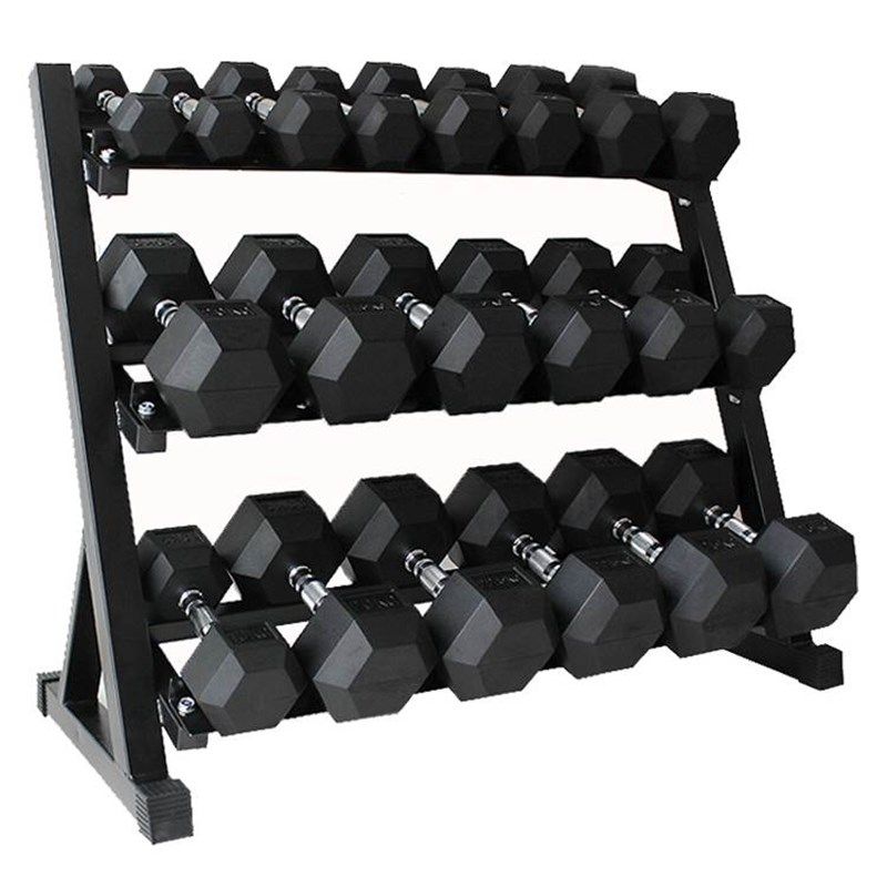 淘宝钰鑫六角包橡胶铸铁哑铃男宿舍家用三层哑铃架套装健身房私教器材