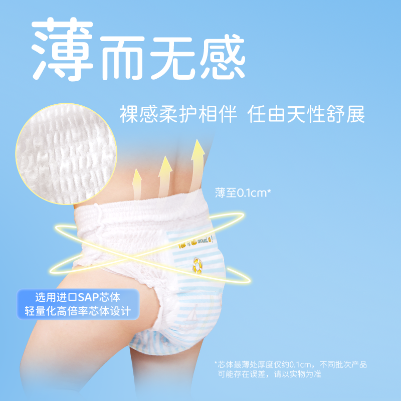 泰迪熊臻薄尿不湿专为新生儿至学步期宝宝设计,采用超薄透气材质,轻盈贴合,有效减少闷热感,呵护宝宝娇嫩肌肤。S至XXL多码可选,满足不同成长阶段需求,其中拉拉裤款式穿脱便捷,适合活泼好动的宝宝。立体防漏隔边设计,有效防止侧漏,整夜干爽安睡。高分子吸水芯体快速锁水,表面持久干爽,减少红屁屁风险。亲肤柔软表层,温和无刺激,通过多项安全检测,妈妈更放心。泰迪熊臻薄系列,以科技与关爱守护宝宝每一步成长,是新手爸妈的理想之选。
