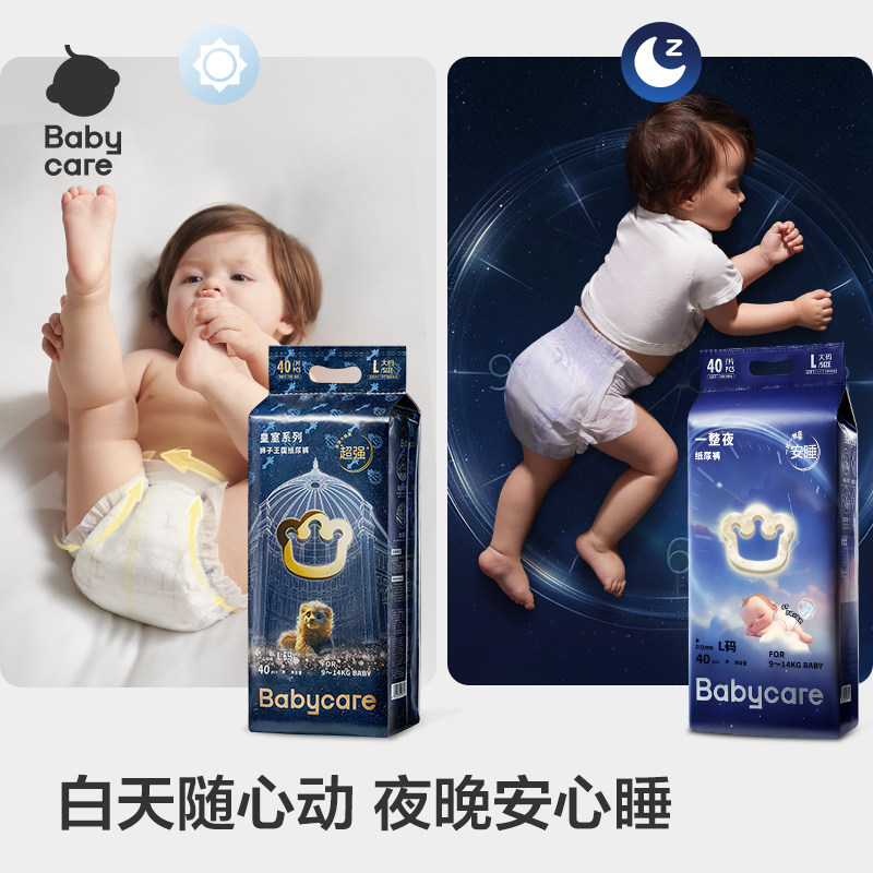【日夜分护】Babycare一整夜皇室狮子王国纸尿裤/拉拉裤,专为宝宝全天候舒适守护设计。采用超薄透气芯体,快速吸收并锁住尿液,保持表面干爽长达12小时,让宝宝整夜安睡无忧。立体防漏隔边有效防止侧漏,贴合身形又不失柔软。拉拉裤款弹力腰围设计,穿脱自如,助力宝宝学步期自由探索。图案萌趣可爱,融入狮子王国主题,增添童趣。无论是白天活动还是夜晚安睡,都能给予宝宝皇室般的贴心呵护。Babycare以安全材质与科学工艺,守护宝宝娇嫩肌肤,让妈妈更安心。