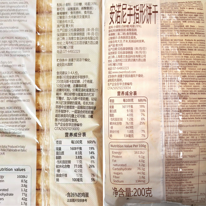 淘宝安诺尼手指饼干200g意大利进口家用西点提拉米苏围边装饰烘焙DIY
