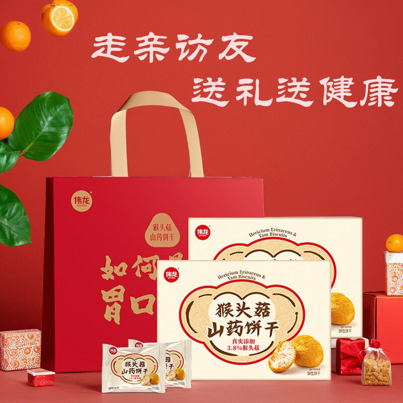 天猫伟龙猴头菇山药饼干礼盒独立包装 抗饿零食中式酥性饼干送礼