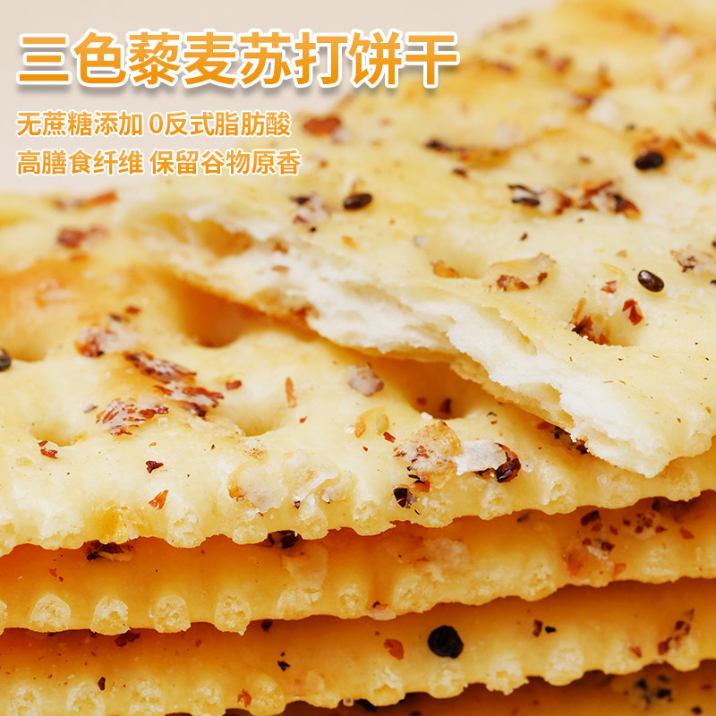 天猫煌记三色藜麦饼干姬松茸鸡肉味黑麦海盐苏打饼干无蔗糖饼干零食