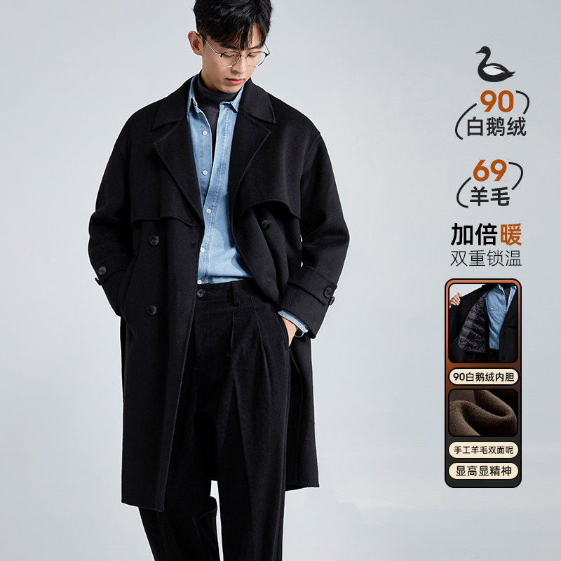 淘宝海上公路90白鹅绒内胆羊毛大衣男士秋冬季双面呢休闲复古百搭外套