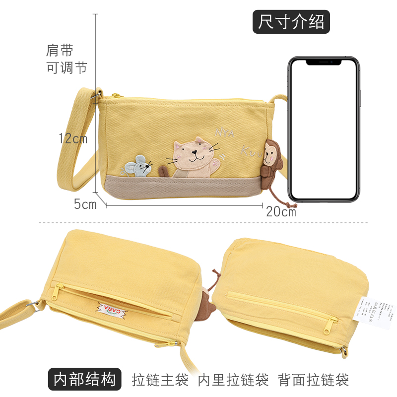 天猫HIKOSEN CARA卡拉猫虎斑猫猫小老鼠斜挎包帆布可爱日系女包手机包