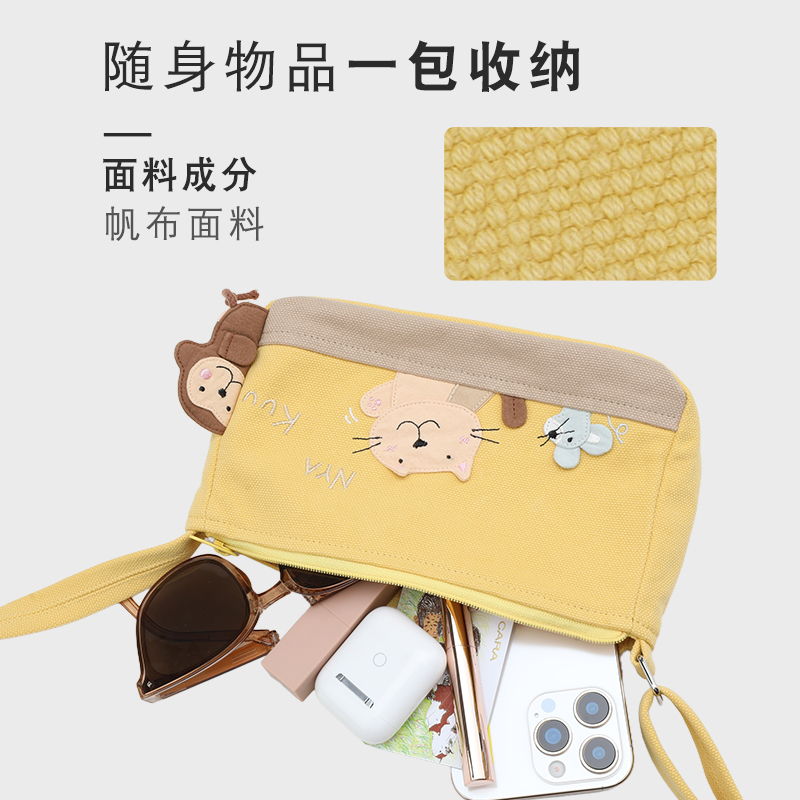 淘韩版女学生手提帆布包便携手机钥匙托特包可爱休闲迷你手拎化妆包