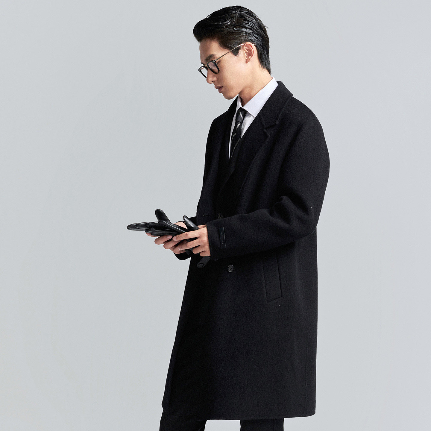 GORNIA/格罗尼雅男士西装款大衣纯羊绒中长款商务中年毛呢外套