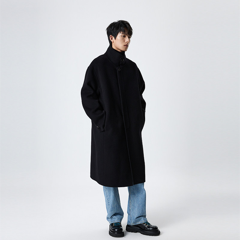 PSO Brand男装女装纯羊毛基础双面呢子大衣长款厚毛呢女款外套冬