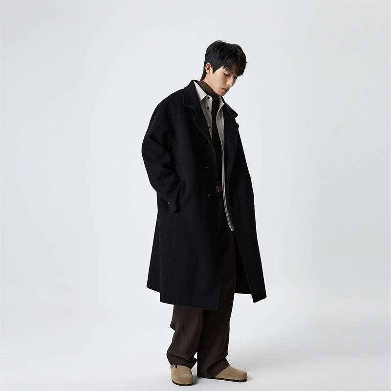 天Mind Bridge冬季双排扣毛呢大衣2025新款双面呢男士中长款外套