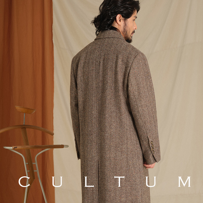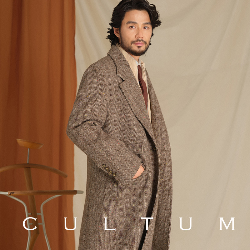 淘宝【重磅全澳毛】CULTUM意式粗纺复古棕彩点人字纹柴斯特大衣外套男