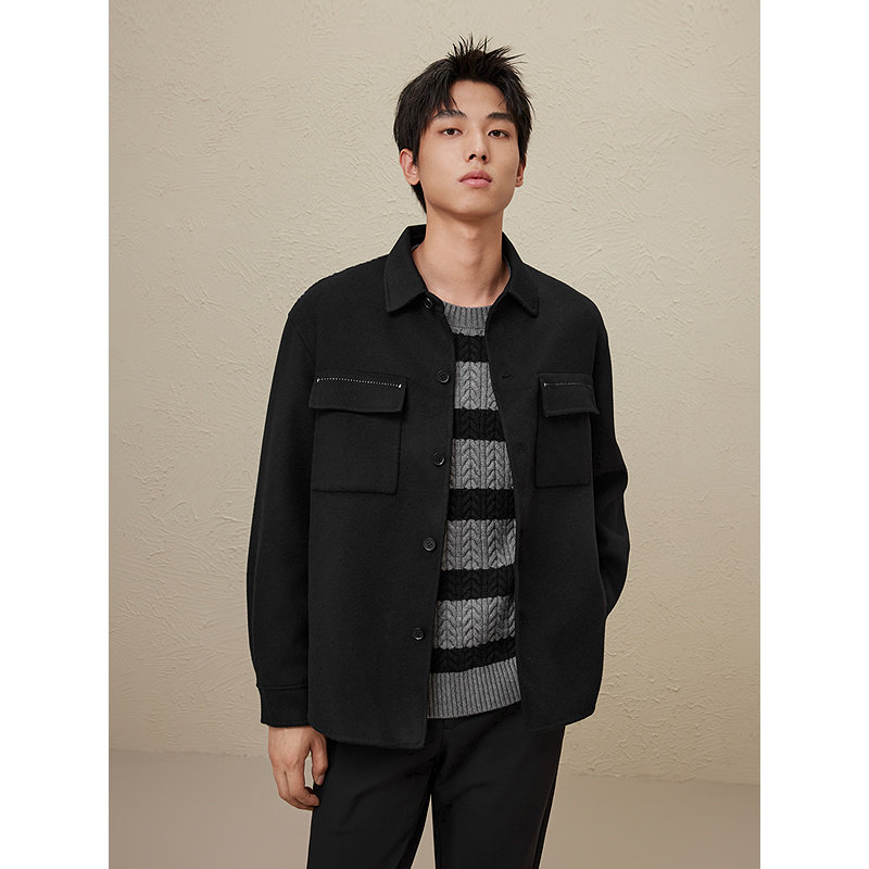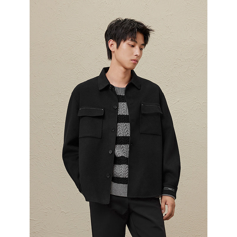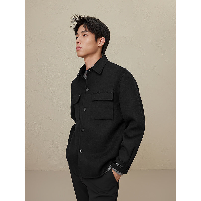 淘秋冬翻毛双面呢羊毛HIGHASH老钱风复古休闲正装夹克男款外套大衣