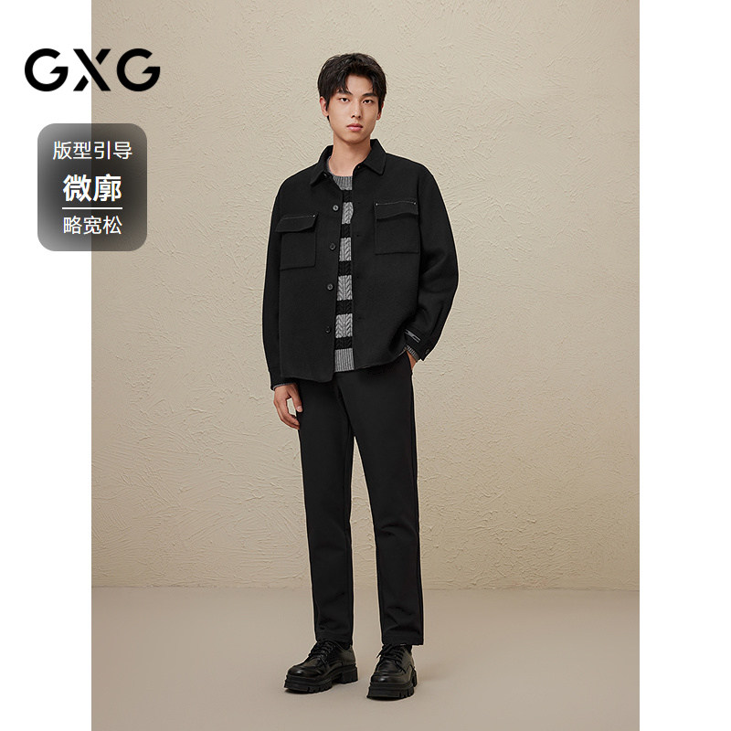 天猫GXG男装黑色羊毛精致短款大衣 2023冬季品GEX10625844