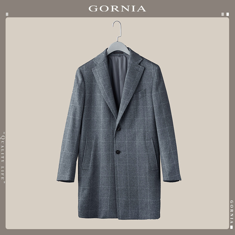 GORNIA/格罗尼雅男士西装款大衣纯羊绒中长款商务中年毛呢外套