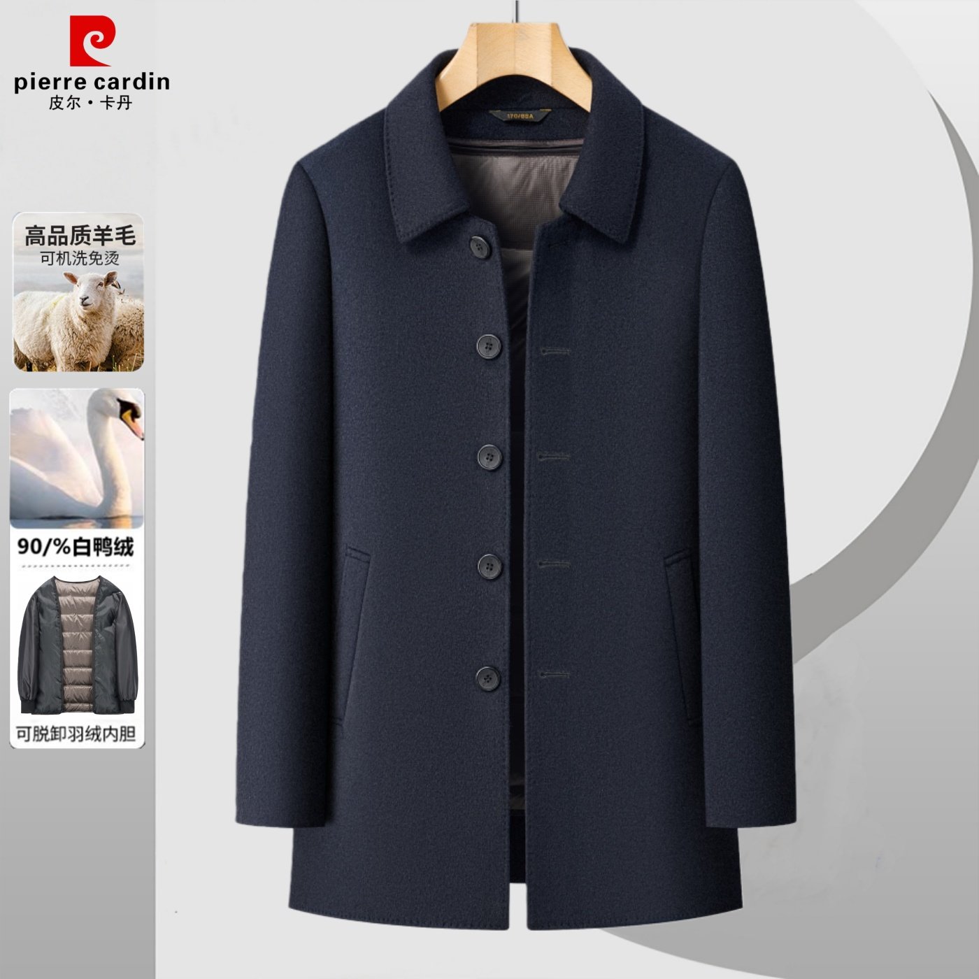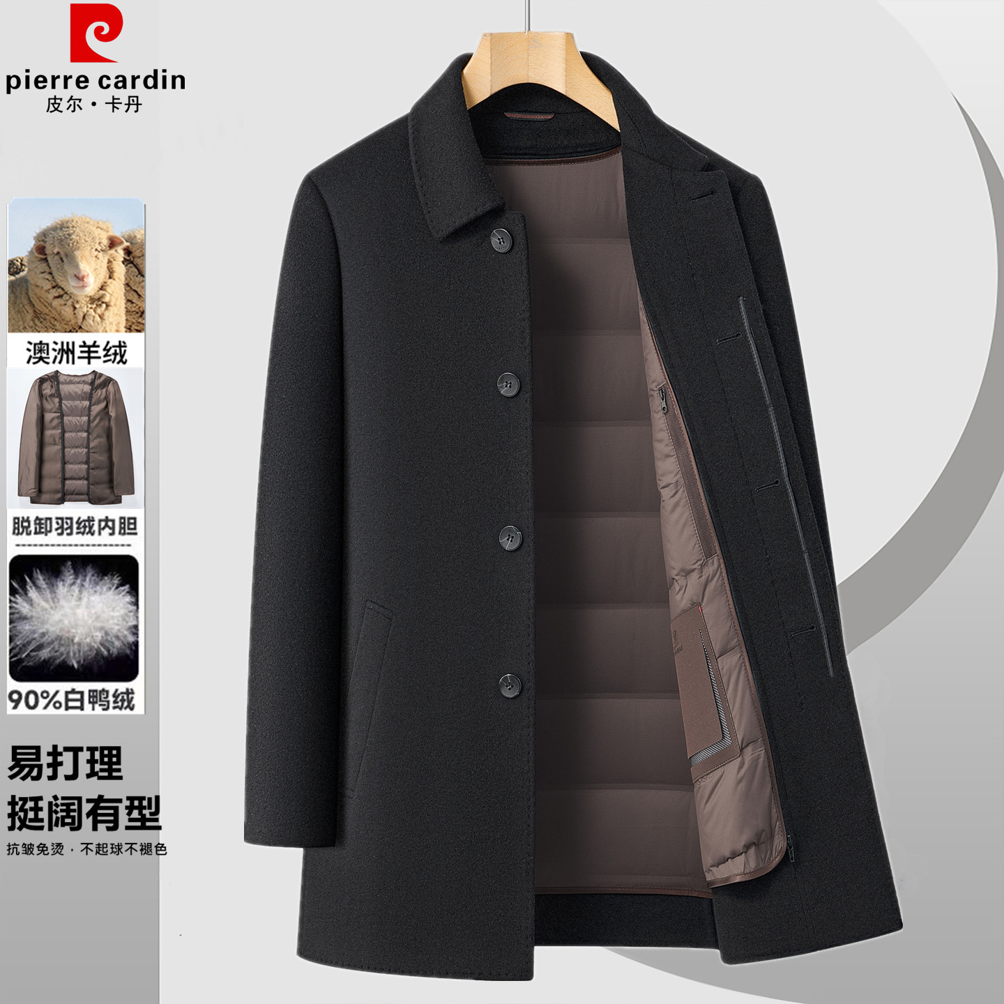 淘宝皮尔卡丹双面呢羊毛大衣羊绒中老年羽绒内胆中长款爸爸毛呢外套冬