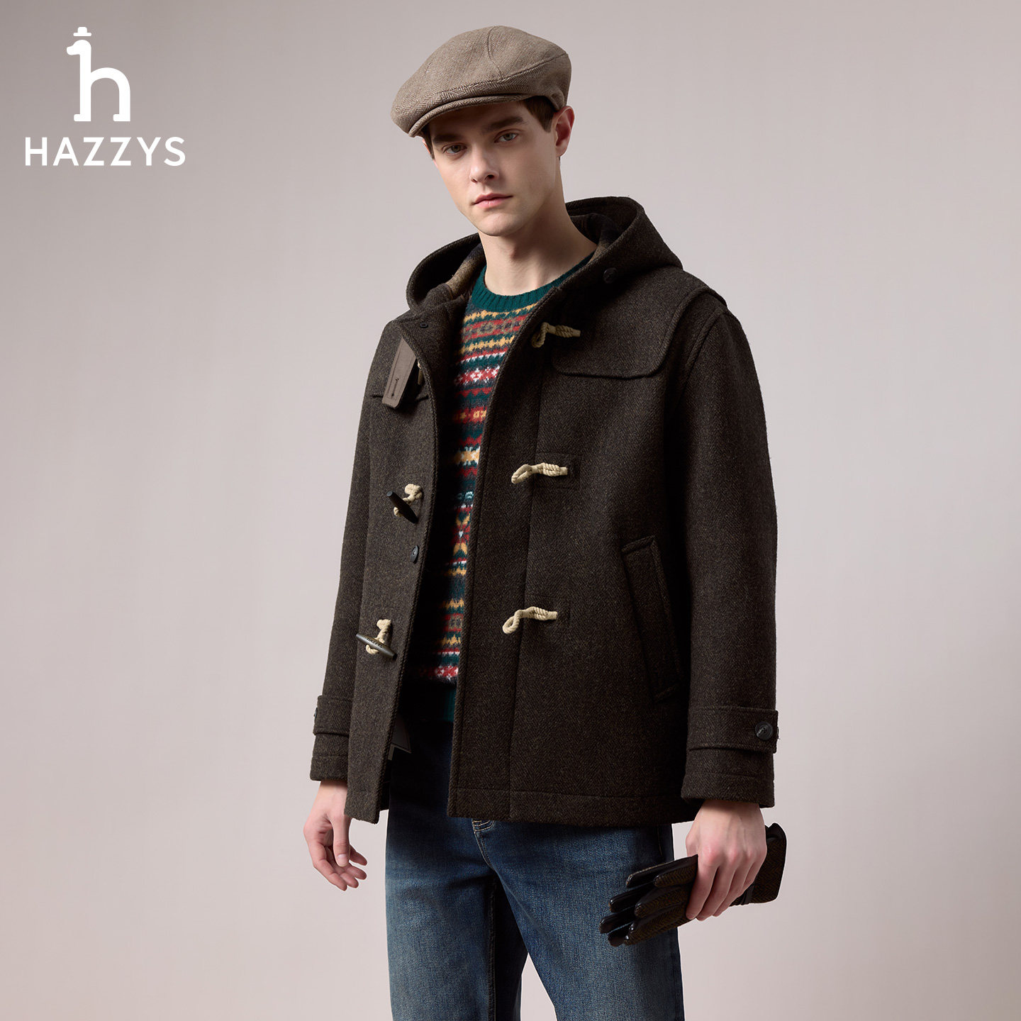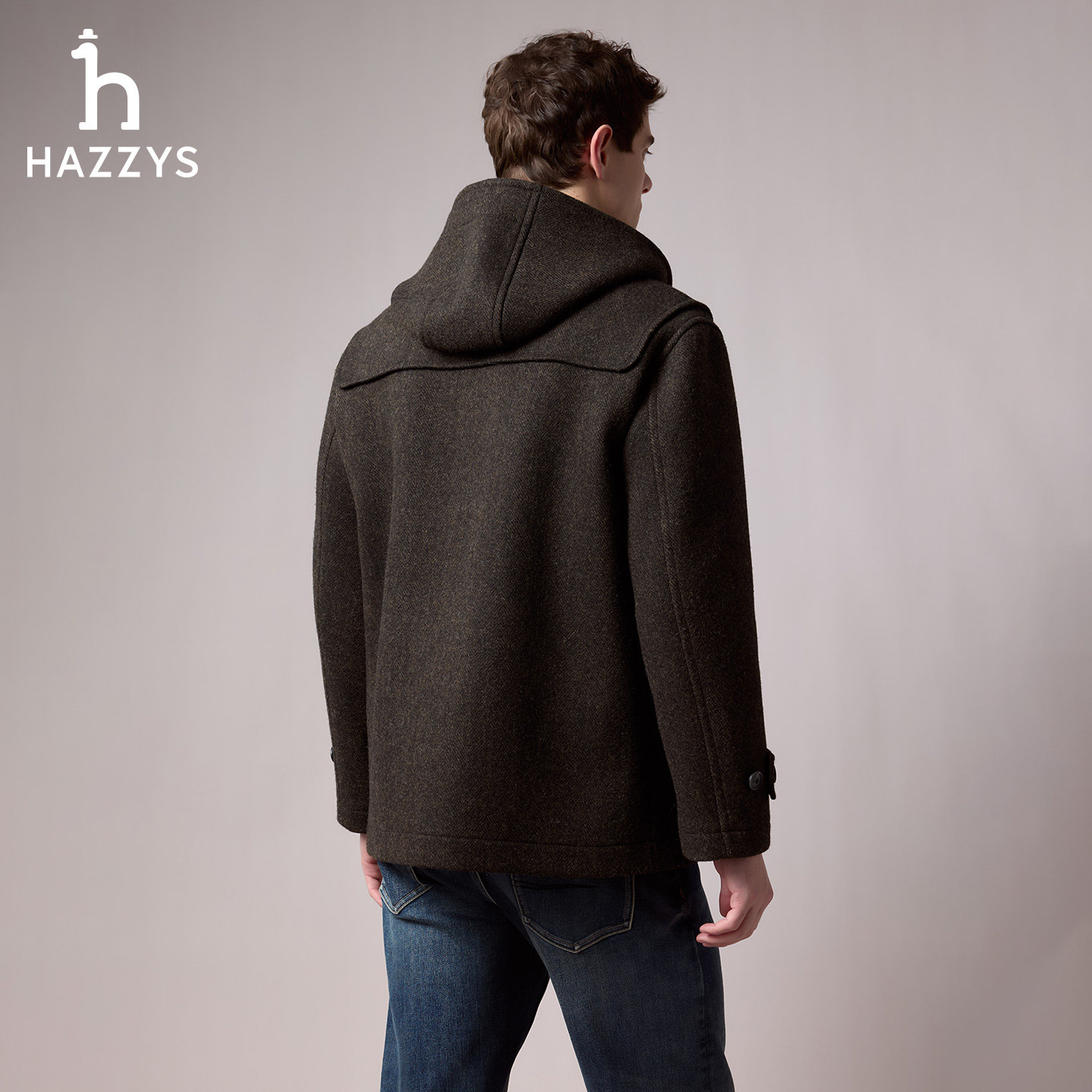 天猫【商场同款】Hazzys哈吉斯2025冬季新款男士短款连帽休闲大衣