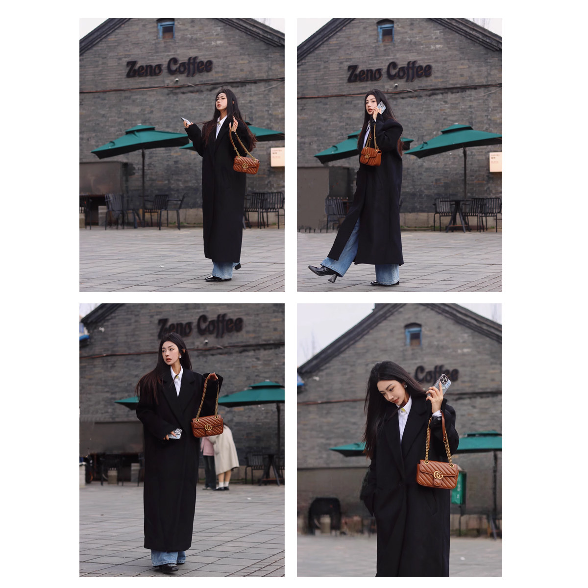 淘宝秋冬羊毛双面呢大衣男士垫肩超长款过膝西装领韩式毛呢子风衣外套