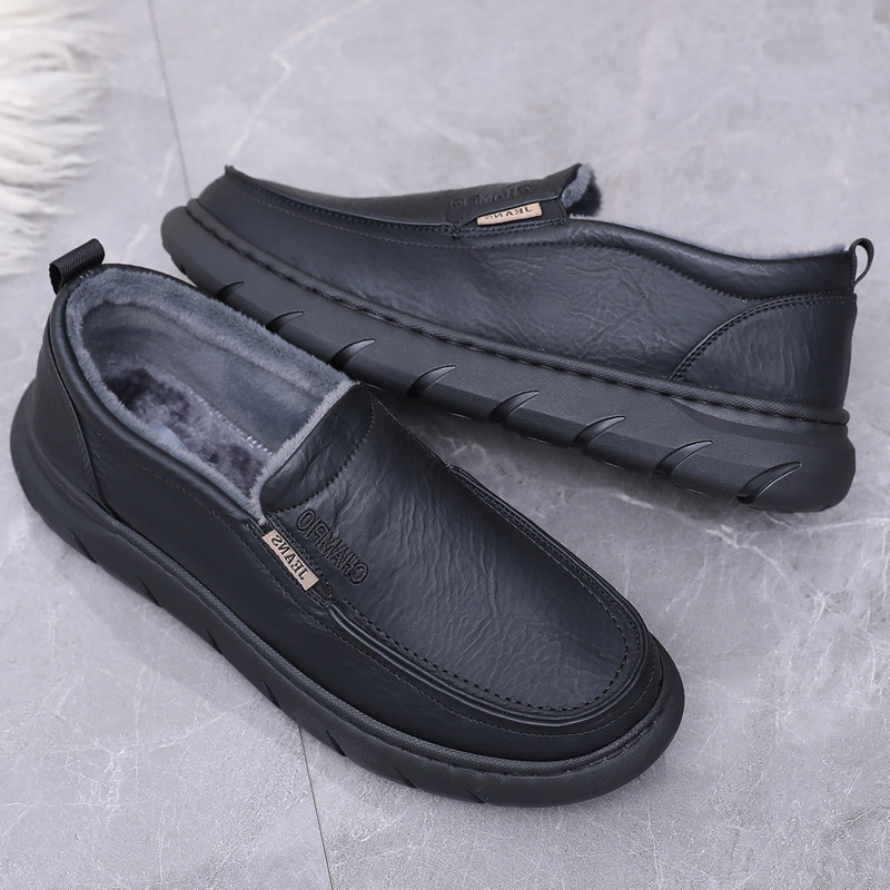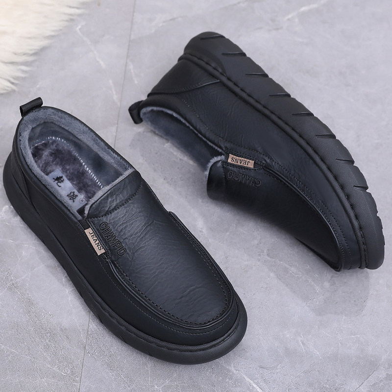 天森马男鞋2025新款冬季英伦风商务正装休闲皮鞋男款加绒保暖棉鞋W