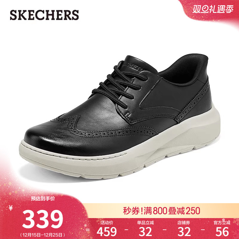 天猫斯凯奇2025年冬季新款男士圆头软底休闲皮鞋黑色商务鞋日常通勤鞋