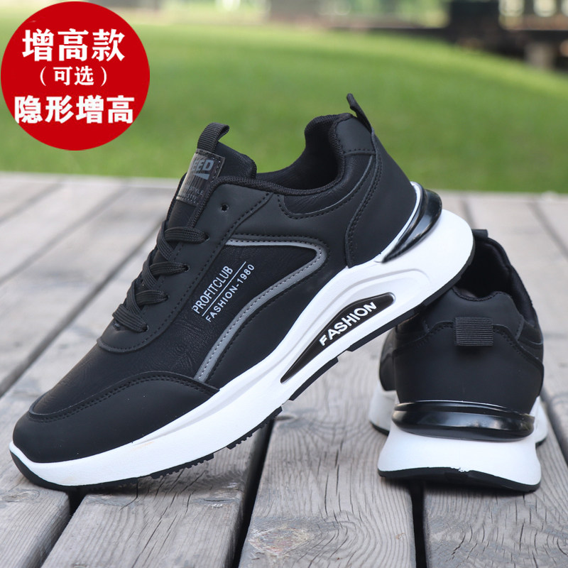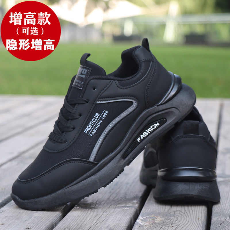 淘宝防水男鞋秋冬季新款男士休闲鞋软底跑步鞋黑色皮面运动鞋防滑鞋男