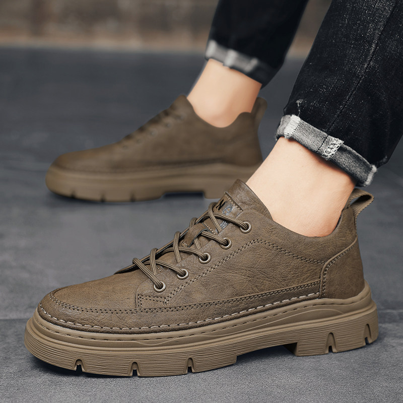 2025年新款冬季男鞋工装马丁靴,融合经典工装风格与现代潮流设计,专为都市男性打造。采用优质头层牛皮,质感细腻,耐磨耐穿,内里加绒保暖,轻松应对寒冷天气。低帮设计搭配软底橡胶大底,轻盈缓震,久穿不累,适合长时间通勤或户外作业。简约百搭的外观,可轻松驾驭休闲、工装或轻商务穿搭,是上班、出行、日常搭配的实用潮品。防滑耐磨鞋底增强抓地力,兼顾安全与舒适。无论是城市街头还是工地现场,这款马丁靴都能展现型格与实力,成为2025年冬季男士鞋柜中的必备单品。