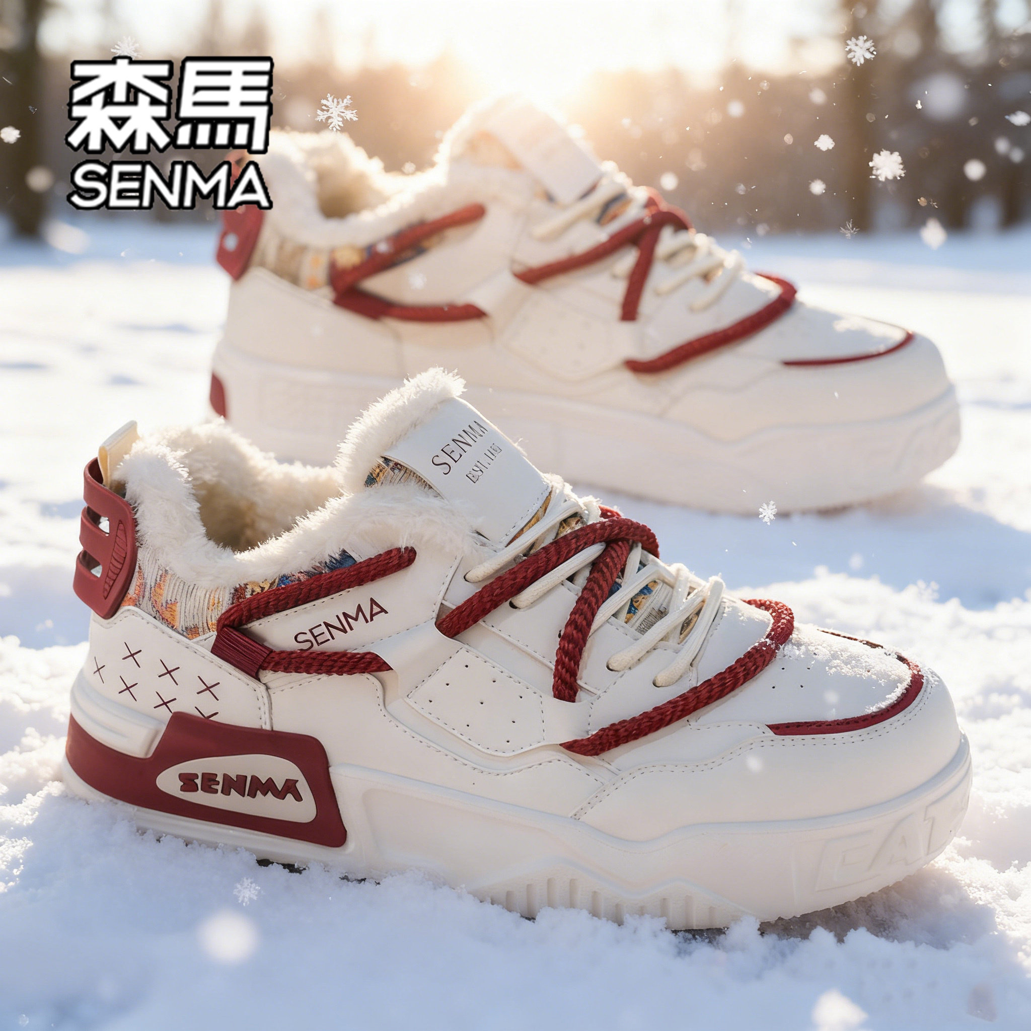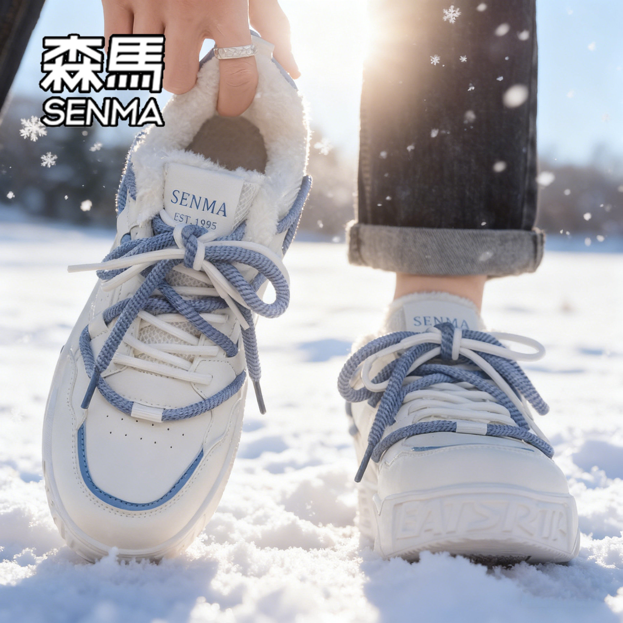 天猫森马男鞋2025新款冬季加绒保暖棉鞋情侣款运动百搭爆款休闲板鞋W